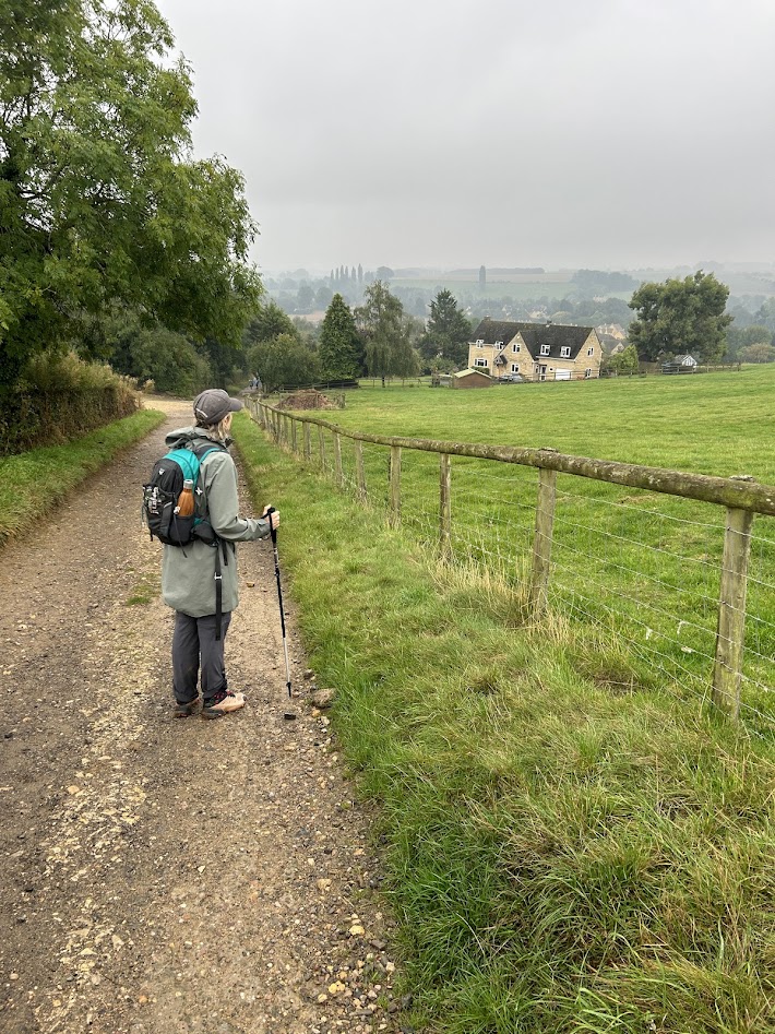 Mom joined us at the tower and hiked the rest of the day with us, about 4.5 more miles through the rain and fog to Chipping Campden.