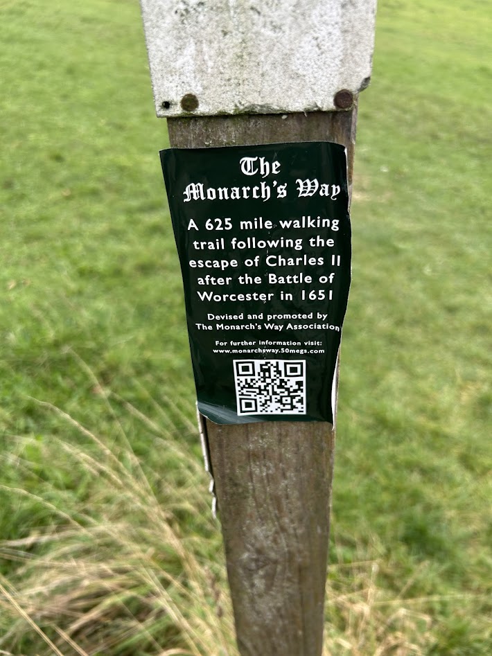 We set off along The Monarch’s Way, which is supposedly the path that King Charles II used to escape in 1651 after being defeated in the Battle of Worcester. The whole path is 625 miles long. More green fields and large manors on this route.