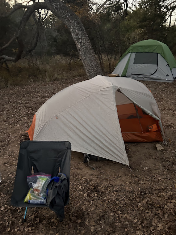 The guilty party would show up a bit after dark (three young guys on their first backpacking trip), but were very apologetic and tore down their tent and moved it up the trail to their correct spot. I got in my tent and was asleep just after hiker midnight around 9pm, despite a curious armadillo that was very interested in my spot and almost stuck his nose under my vestibule at one point. Such funny animals.