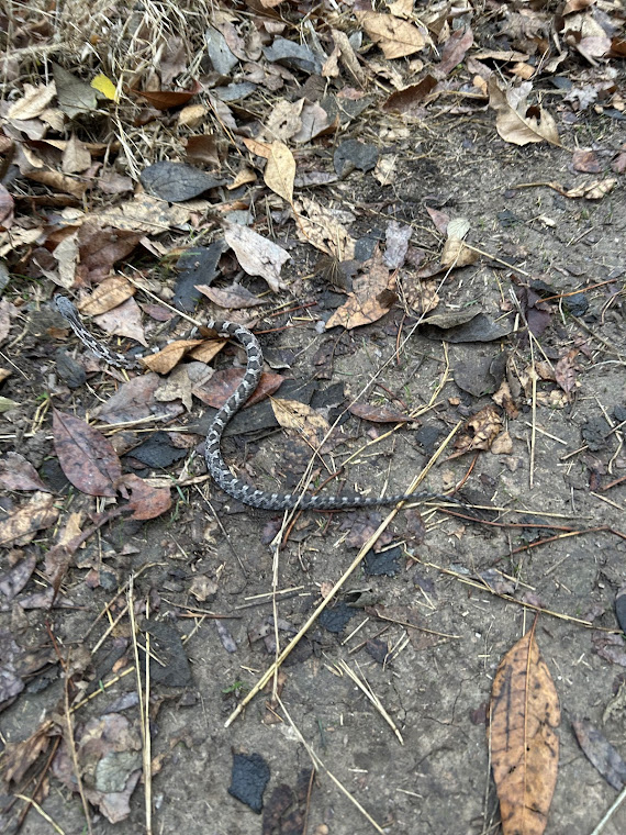 The hike out was very pretty with the sun coming up and I saw plenty of wildlife. A baby rat snake that I helped off the trail: