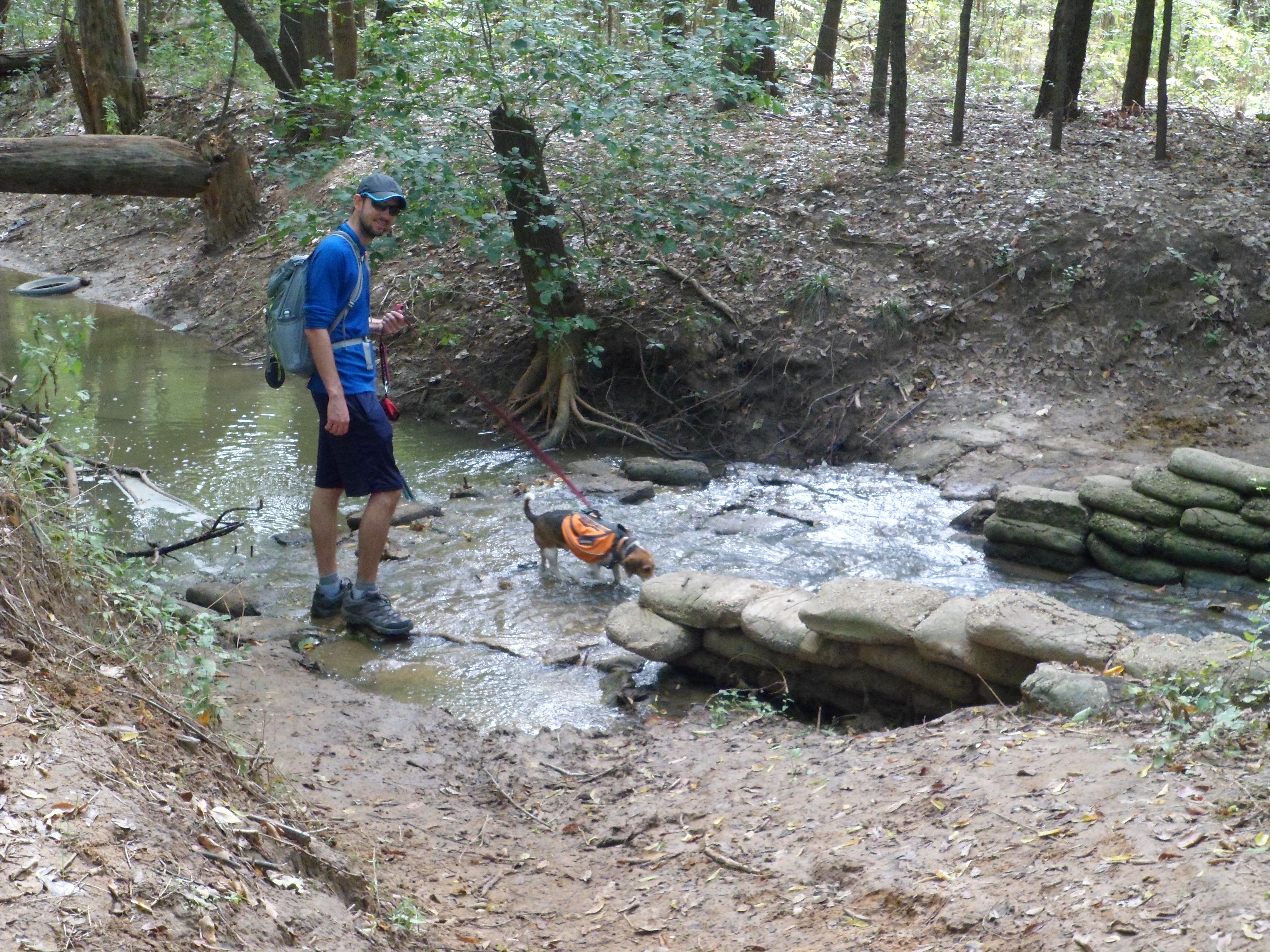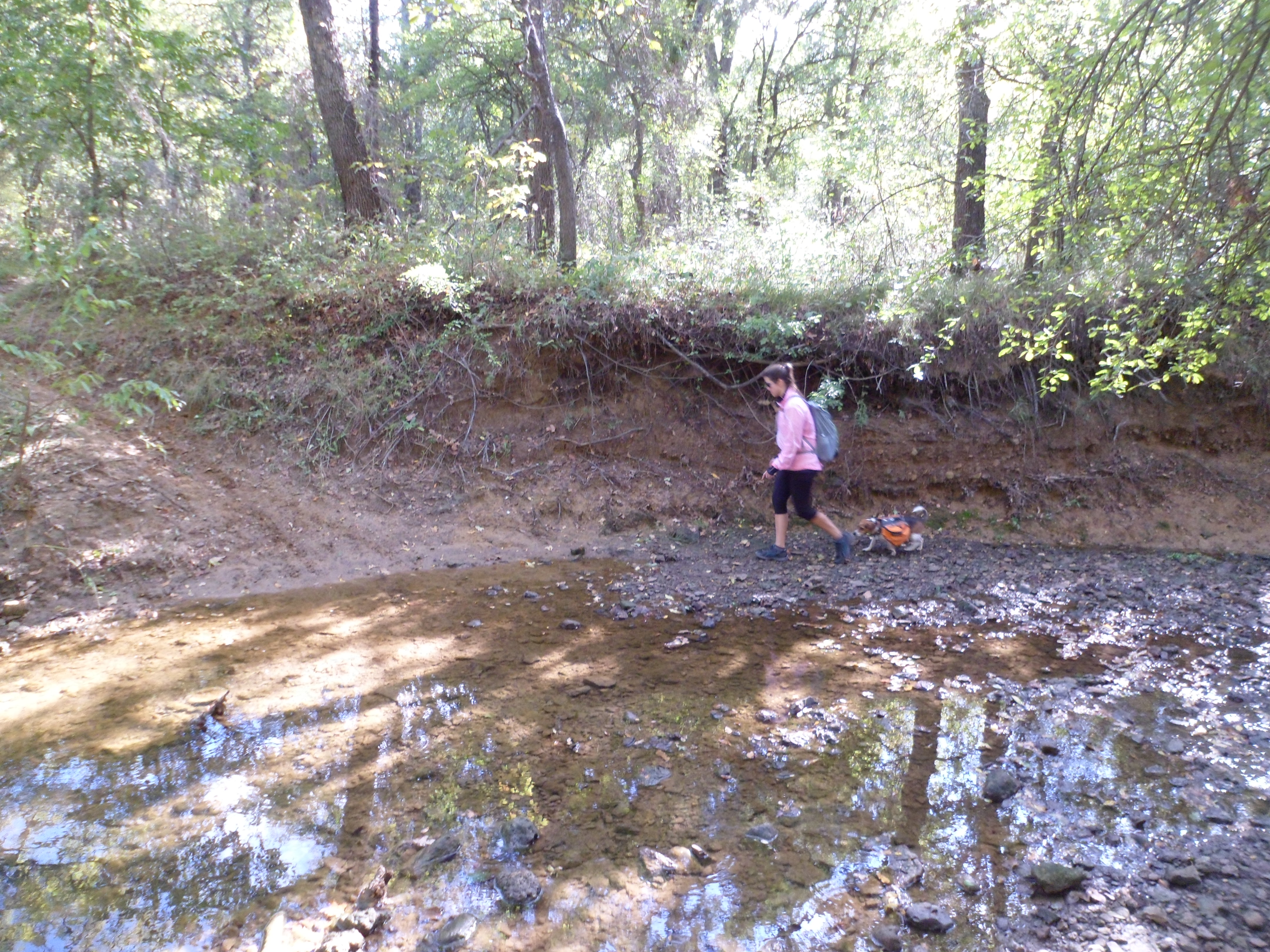 It was a bit chilly this morning. Fall has officially hit Texas. We hit the trail a little after 9:30am. This was Biff’s first hike with his new backpack and he did really well. The trail head is at the Old Alton Bridge, which is an iron bridge built in 1884. It was decommissioned in 2001, but is still open to foot and horse traffic.