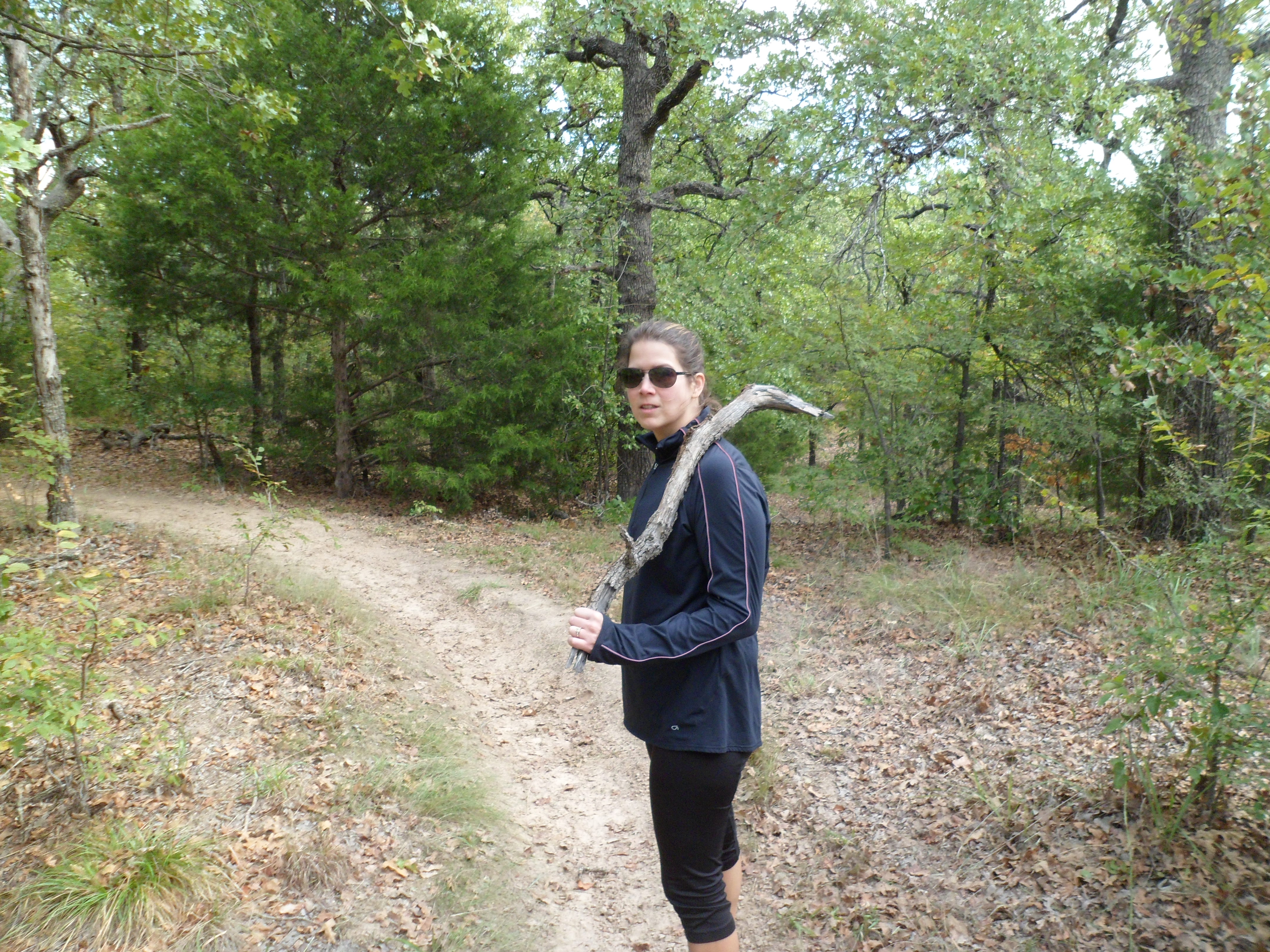 Biff was off leash for the first half, but on the way back we spotted a coyote just 20 yards off the trail and Biff was on leash for the rest of the journey. Court picked up a coyote stick to protect us, despite my laughing. Shortly after, we noticed quite a few animal remains that must have been the coyote’s leftovers. We labeled this section the Trail of Death. There was a crow skull, a pile of bird feathers, parts of an armadillo, and a fresh possum carcass. The coyote must have been eating well.