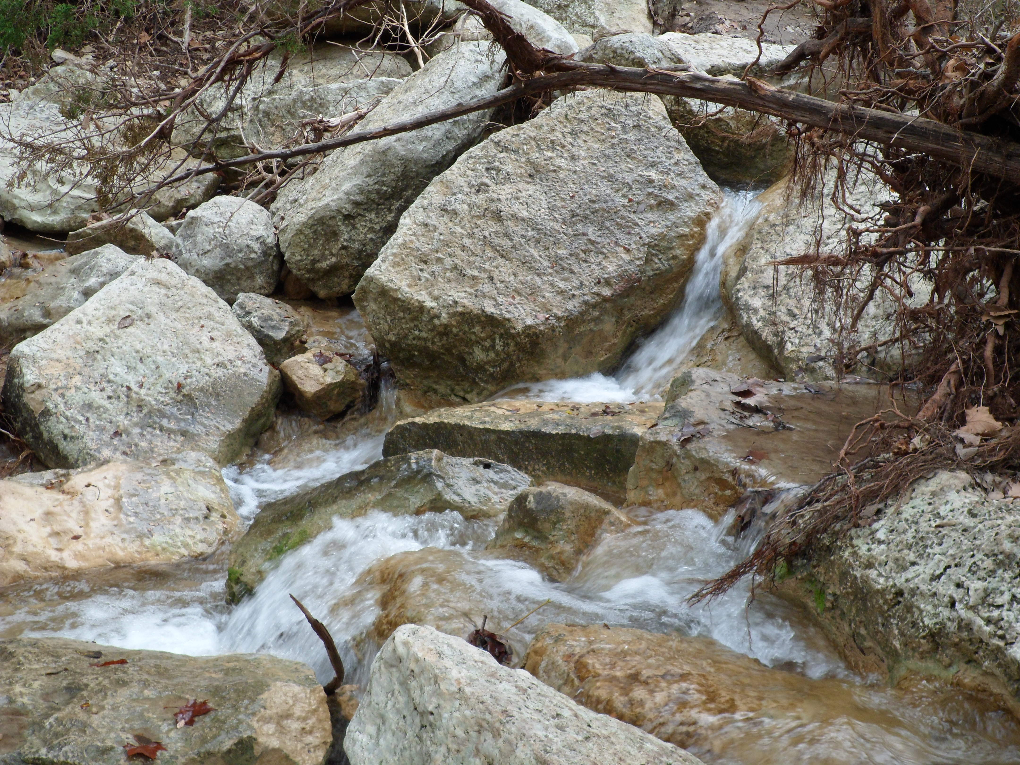 The trail was very wet and muddy and very heavily traveled today. Turkey Creek Trail is located in Emma Long Metropolitan Park, off City Park Road. It is extremely dog friendly and most people had their dogs off leash. The water was still flowing very well from the previous month’s rains and we crossed the creek multiple times, to CV’s chagrin. There is no real explanation as to why CV hates water so much, but I don’t think I’ve seen another dog match his disdain. We eventually had to turn back before we could finish the loop because CV was so miserable. He doesn’t mind the trail, but crossing the water is where he draws the line. I even had to carry him across one of the crossings.