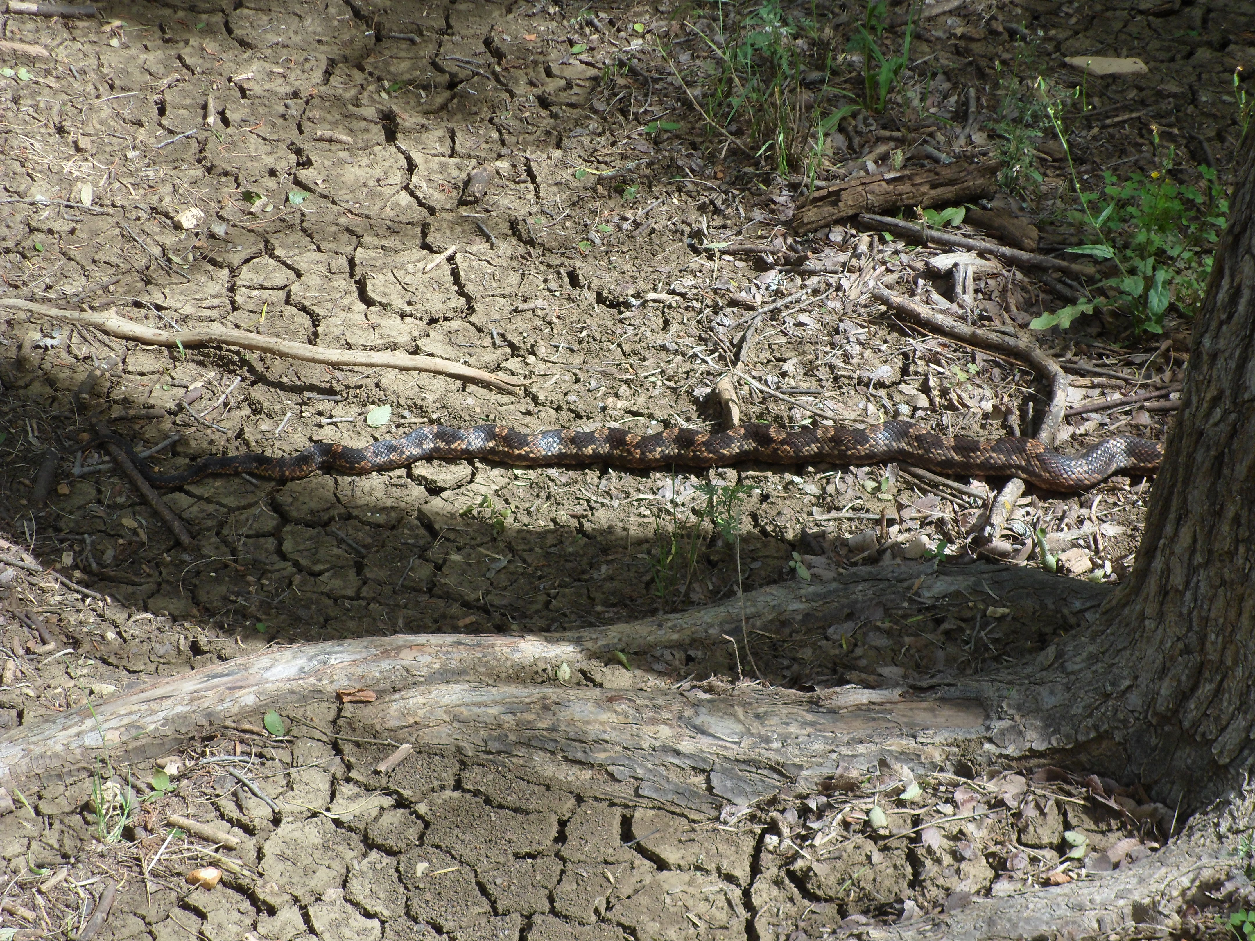 As I said, we saw two snakes. The first was across the trail getting some sun and we gave it a wide berth and went around. I’m pretty sure it was just a rat snake. He was very long and thin and once we started to go around, he got a little scared and started up a tree in the middle of the trail.