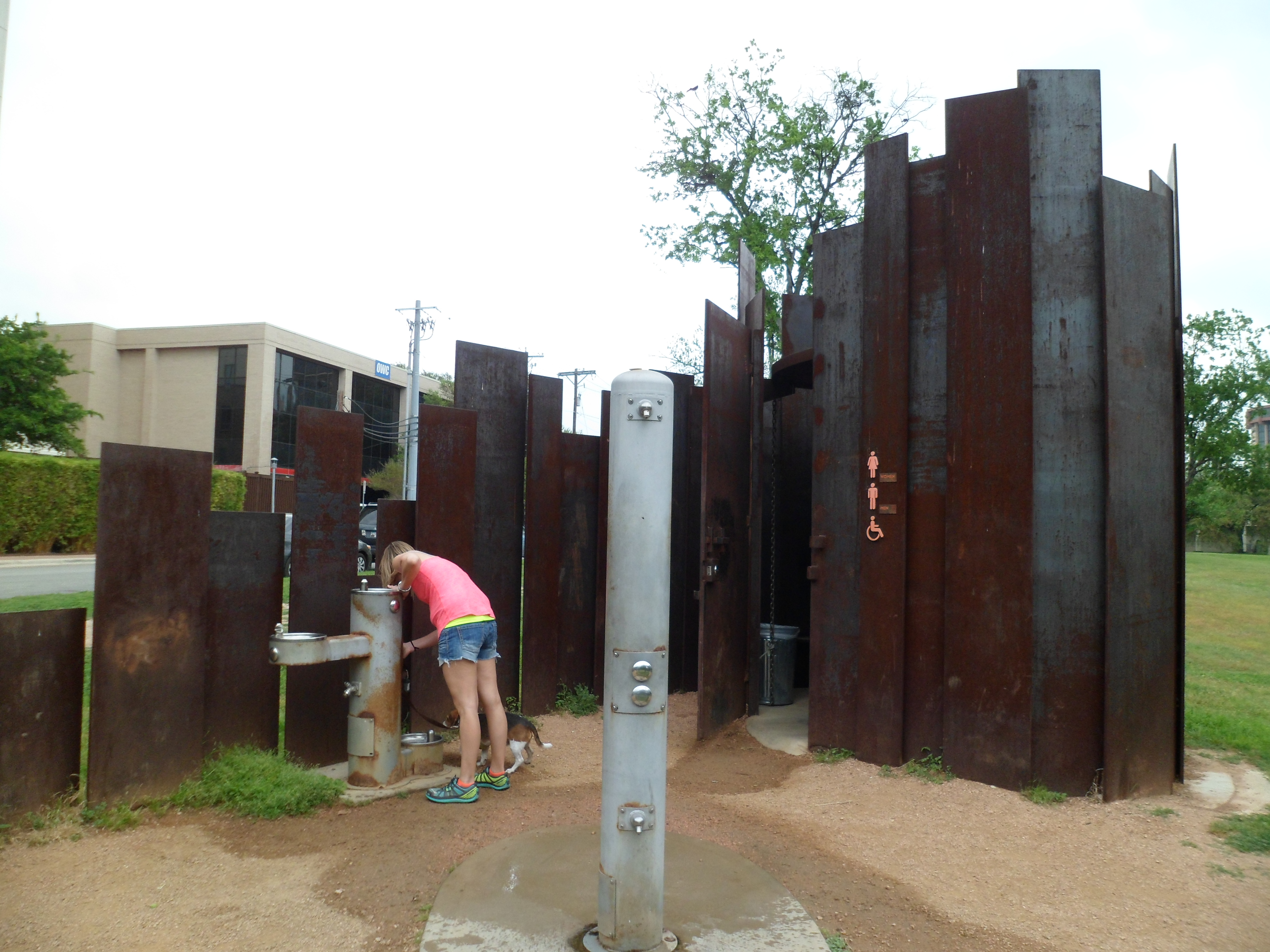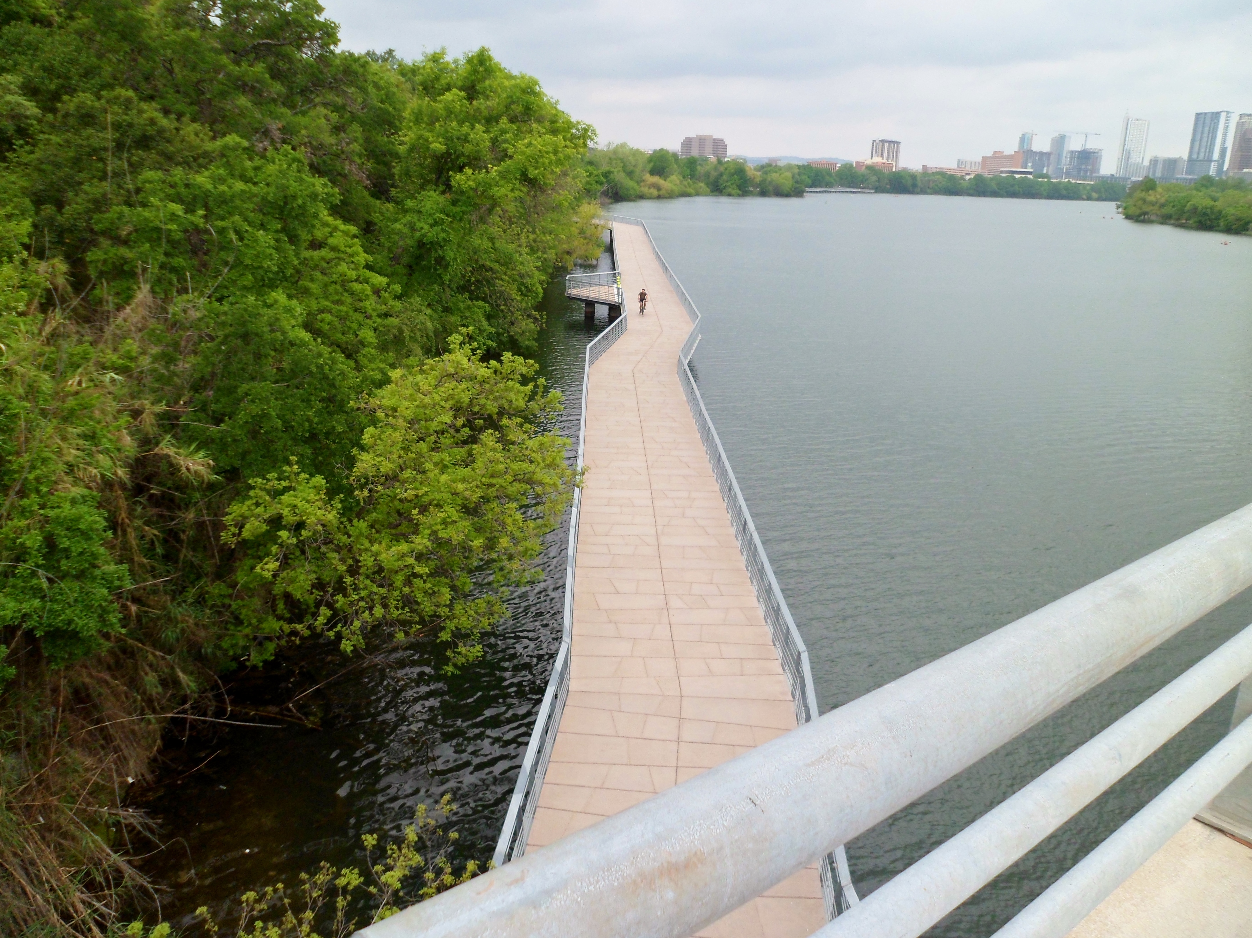 The boardwalk was completed in the past year or so, but we had never been on it, as we usually do the trail going the other way, towards Mopac. We really enjoyed it and the trail on this side is a lot less crowded. The rails on the boardwalk are decorated with leather belts that have famous local song lyrics imprinted on them. Interesting art choice.