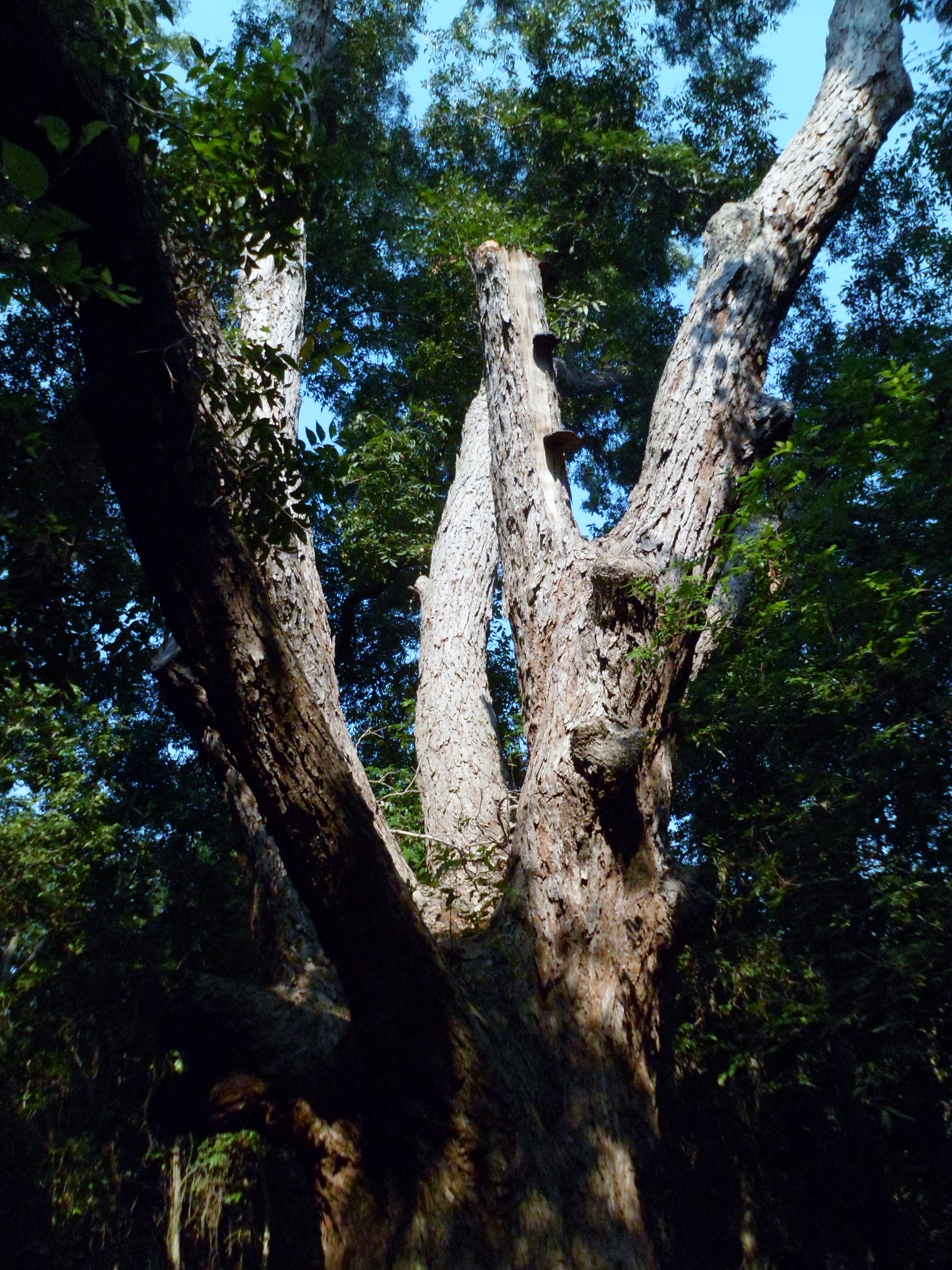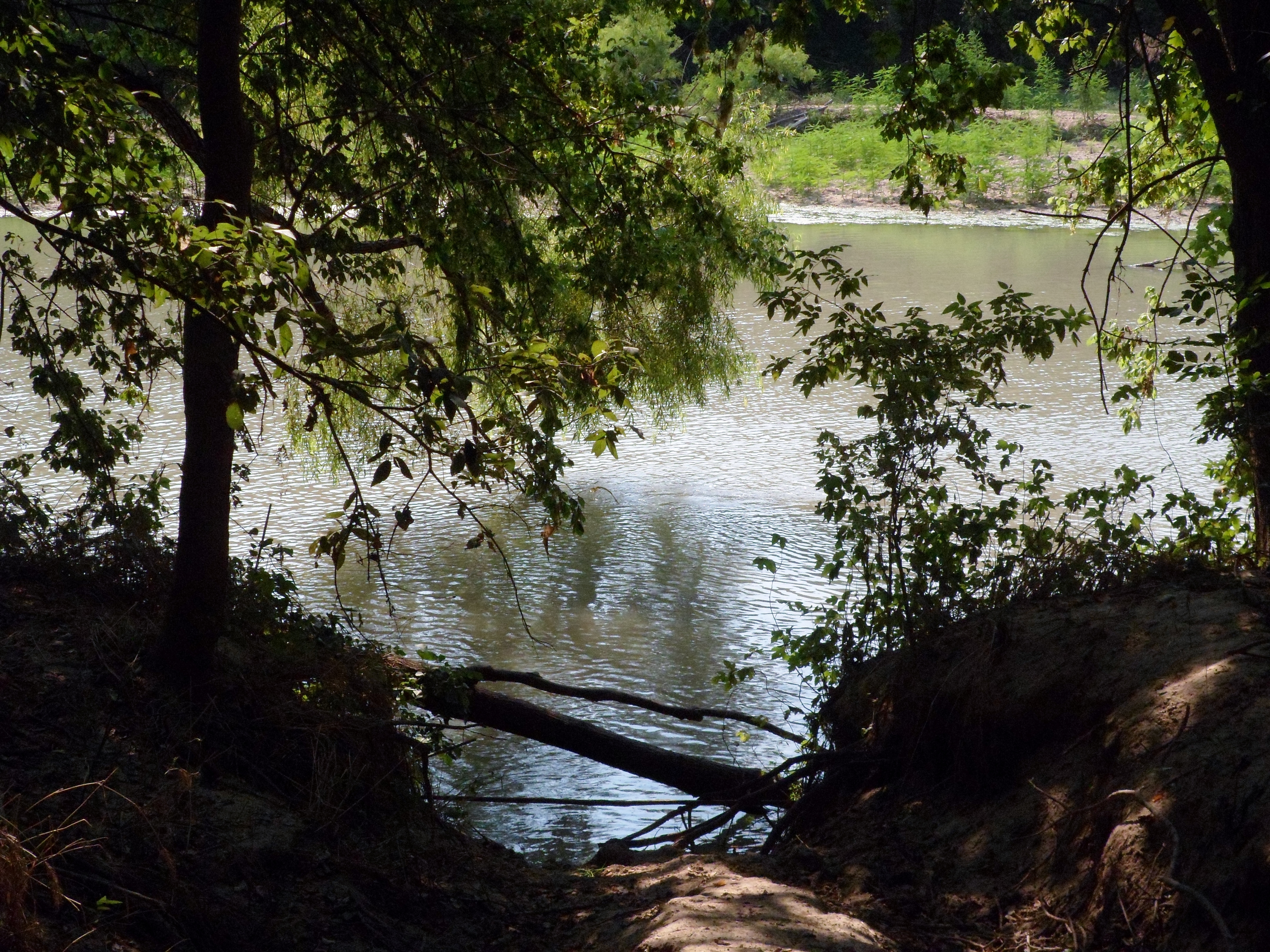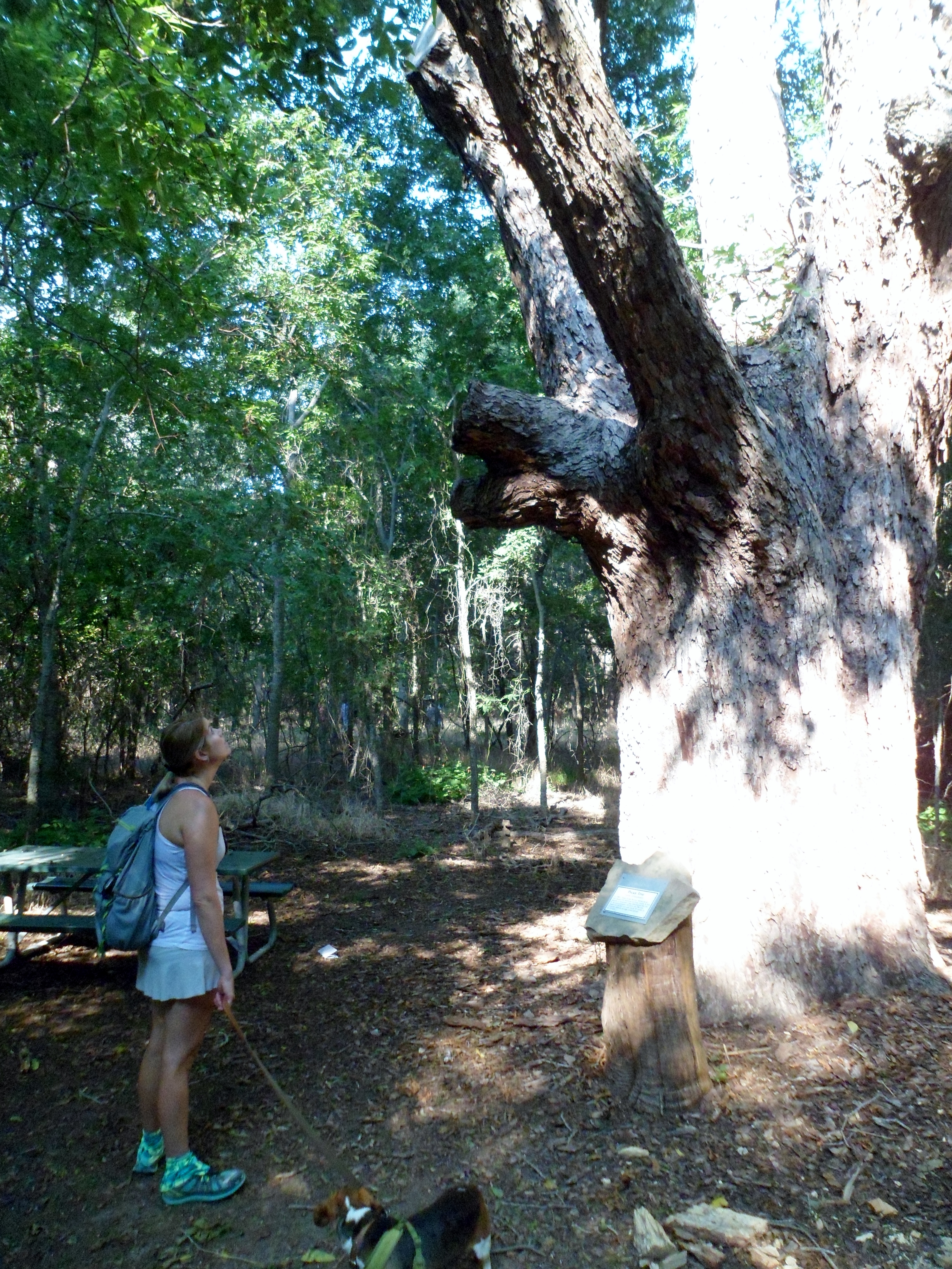 From there the trail headed back down towards the river.  The trail is nice and shaded and bordered by many flowers.  We both agreed this is a very underrated park.  On the way down to the river bottom we passed by the biggest tree in the park, a pecan tree over 200 years old.
