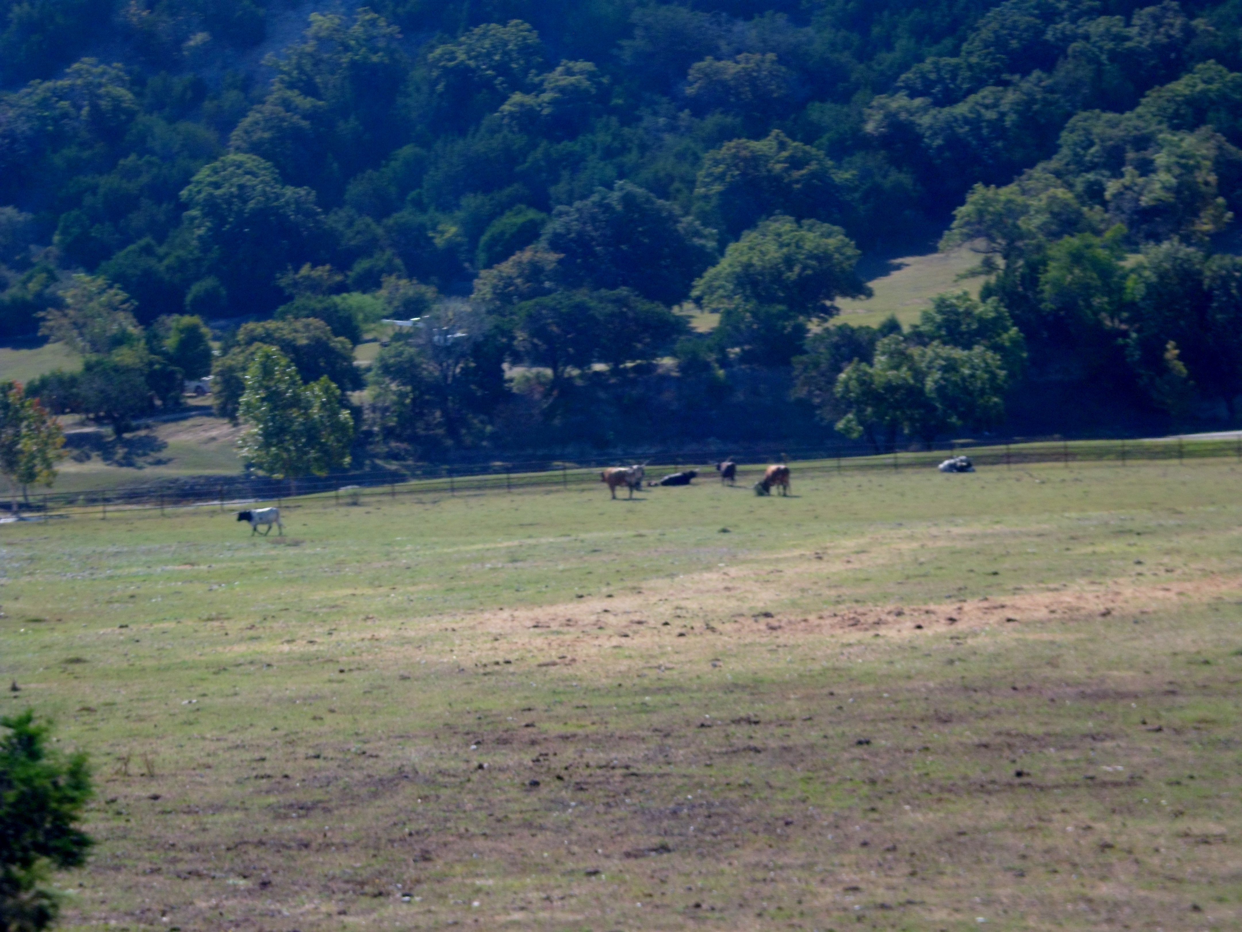 Just outside the Vanderpool area we passed by the Siesta Valley Ranch, which is a working dude ranch at the base of a huge cliff with longhorns and bison and a beautiful lake. Court was in love.