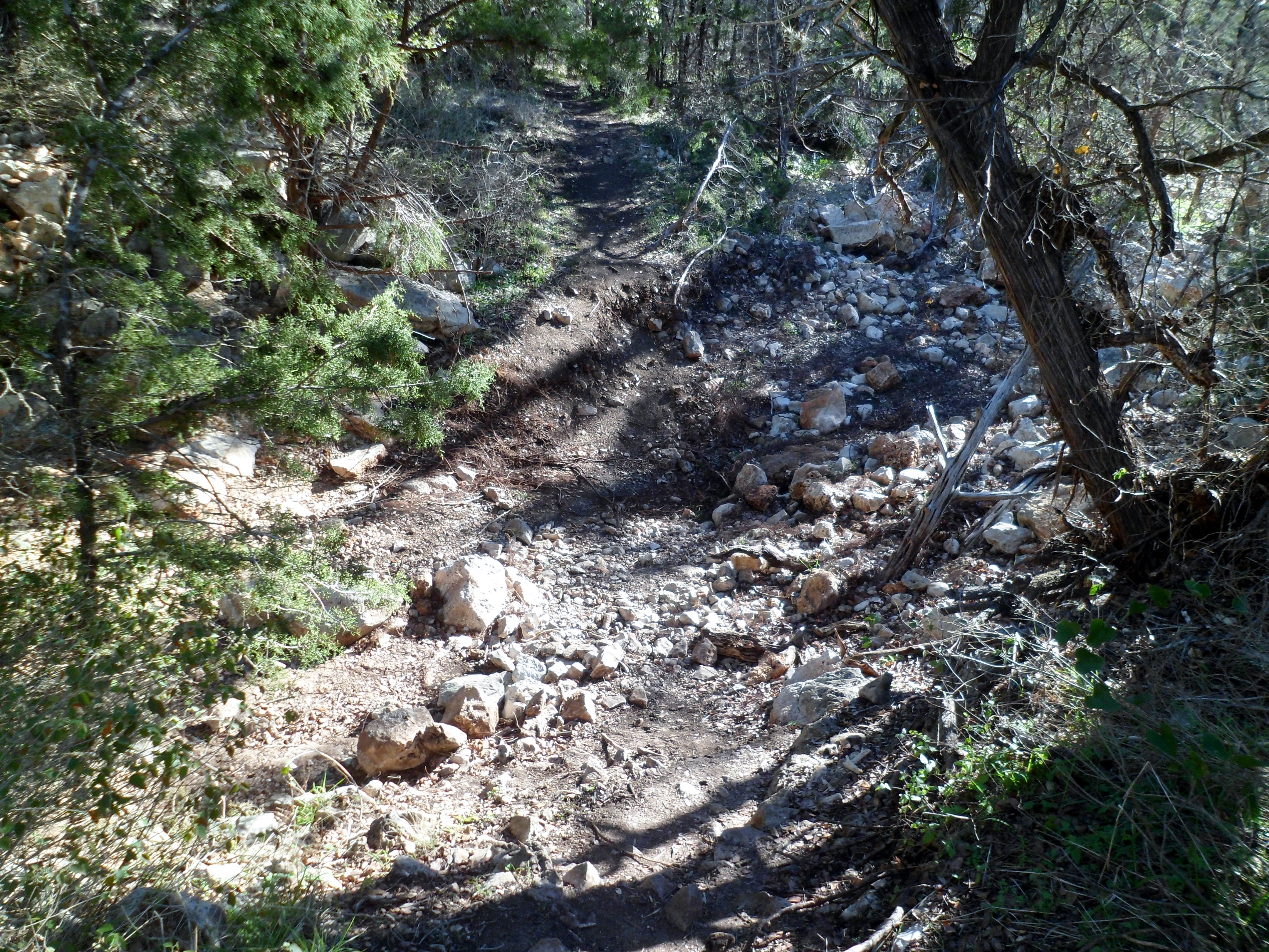 There were several cars in the parking lot, but I only saw two other hikers while I was out there. I started off on Dante’s Trail, which is pretty rocky; the typical fare for Texas Hill Country hiking. No water was running in Pandemonium Creek. The trail was blocked before I could get to Purgatory Creek, but I assume it is dry too.