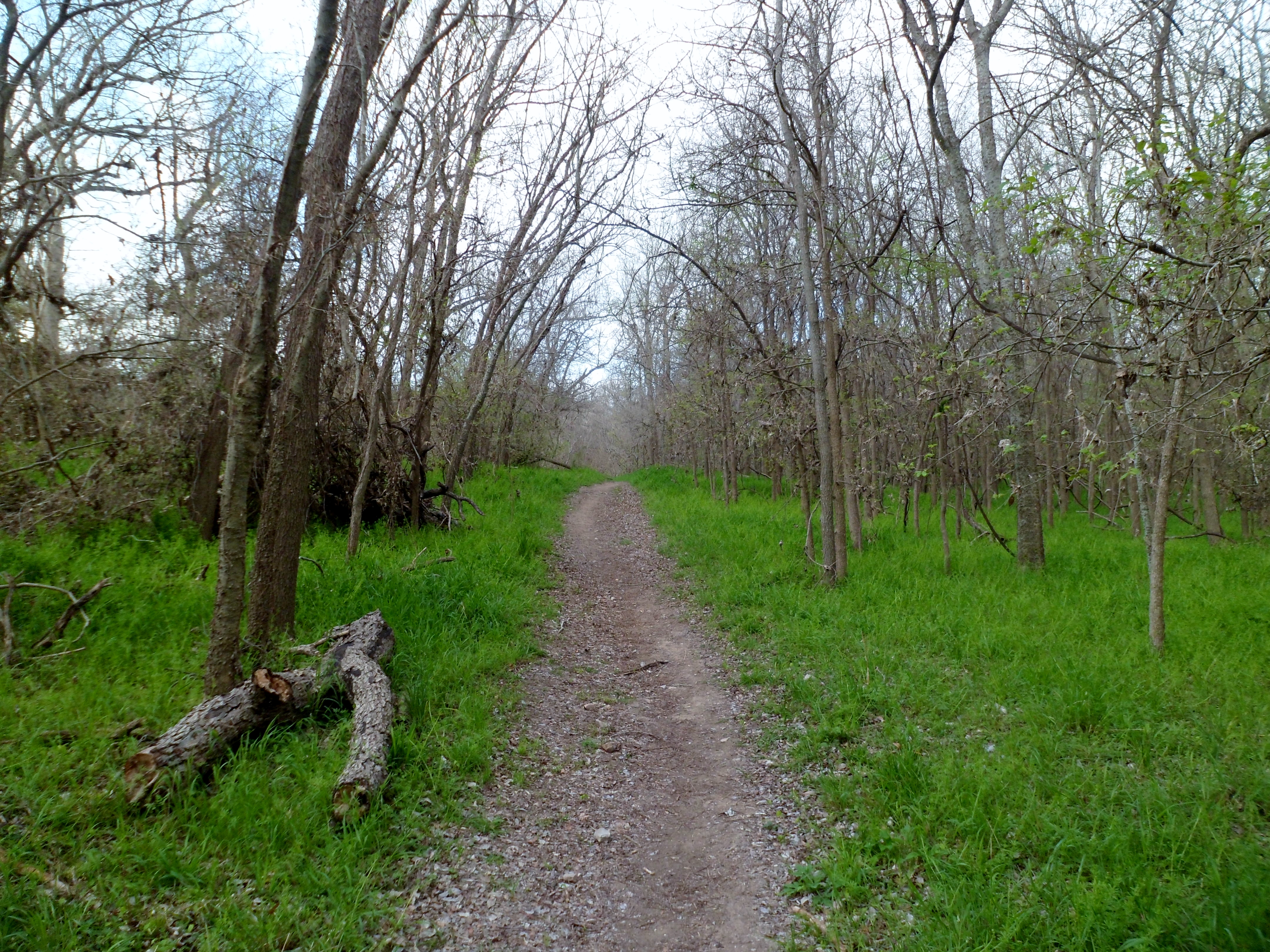 At the other side of the creek, the trail climbed out of the creek drainage and became flatter and was a sparse forest with very green grass. Most of the trees don’t have leaves yet, but they are on the verge.