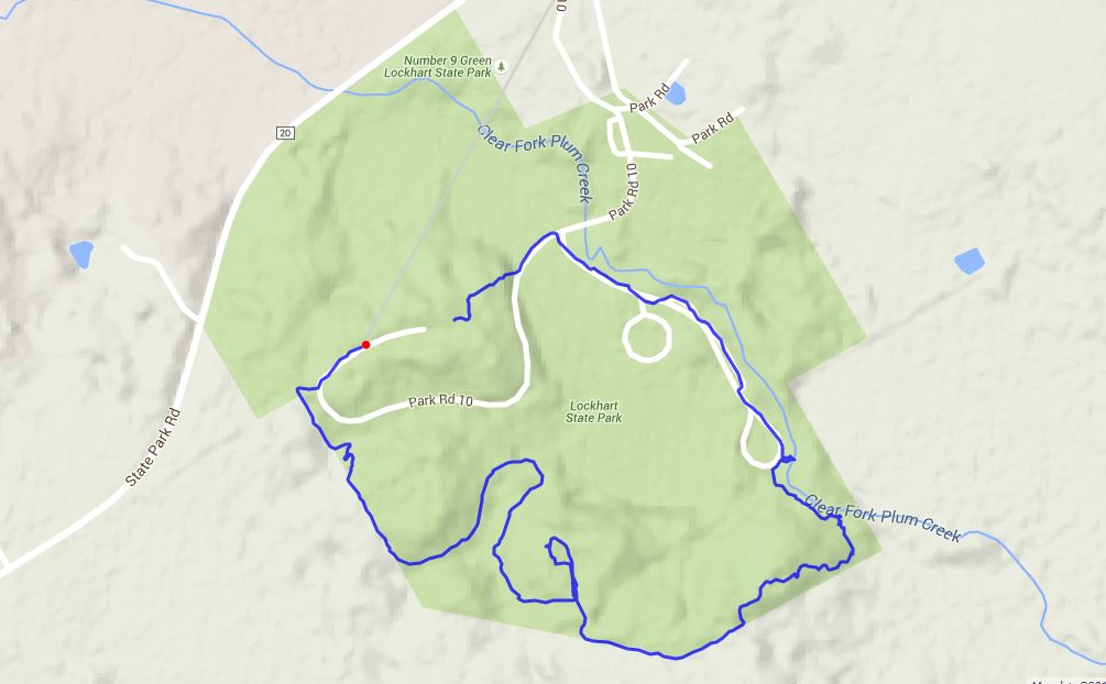 The creek that flows through the park, Clear Fork Plum Creek, was pretty silty due to recent rains and not very pretty, unfortunately. The trail was supposed to cross the creek towards the end, but the creek was pretty high and basically un-fordable, so we had to road walk a bit to get back to the car. Overall a nice hike, albeit short.