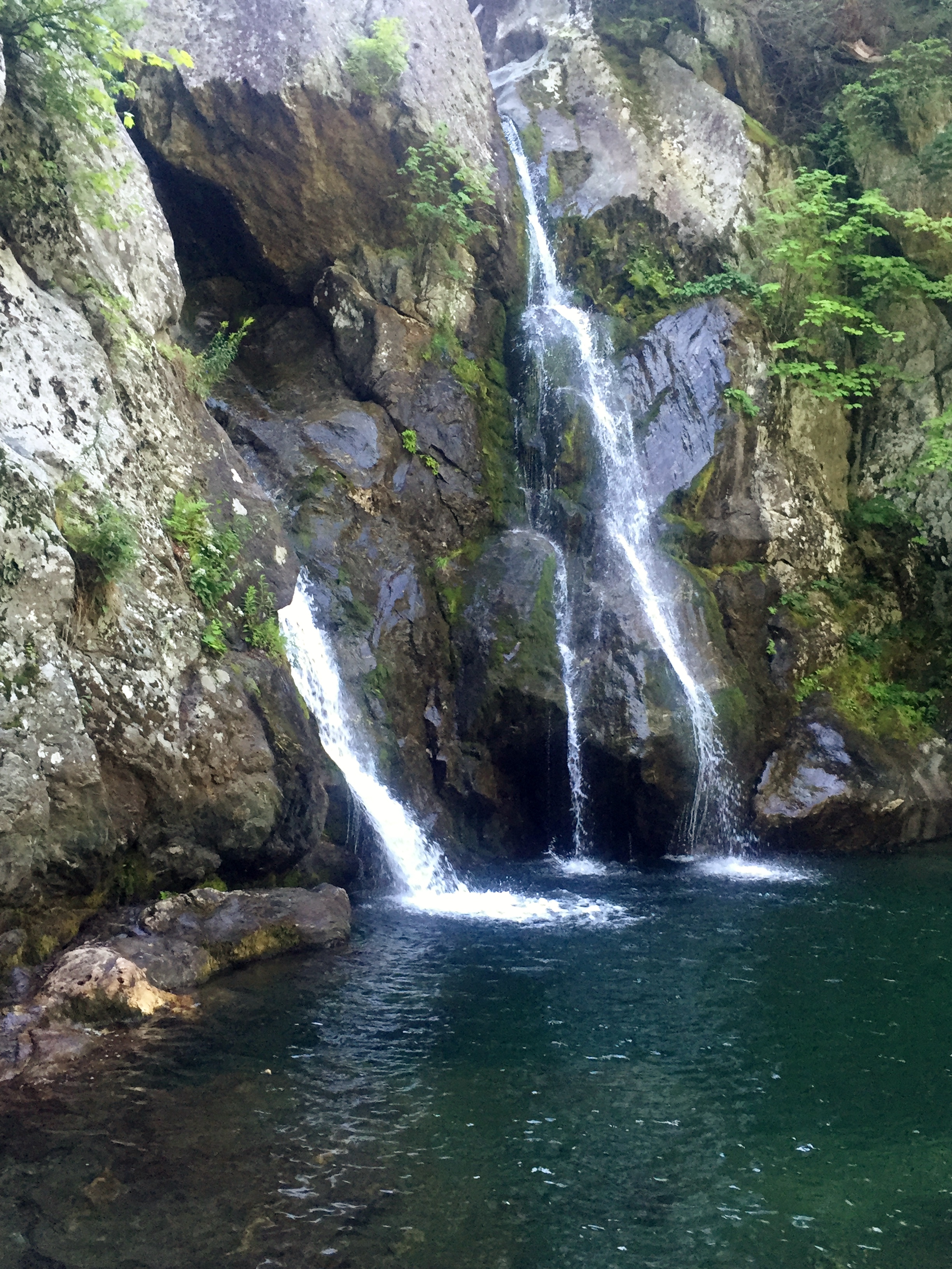 After some interesting driving to get to the trail head, there was only one other car there at about 9:30am. It was a Tuesday, which I guess contributed to the lack of hikers. We headed down the trail and immediately were in the deep woods and started losing elevation down to the falls. The terrain and landscape is so different from what we have been used to in Texas and it was great to see something different.