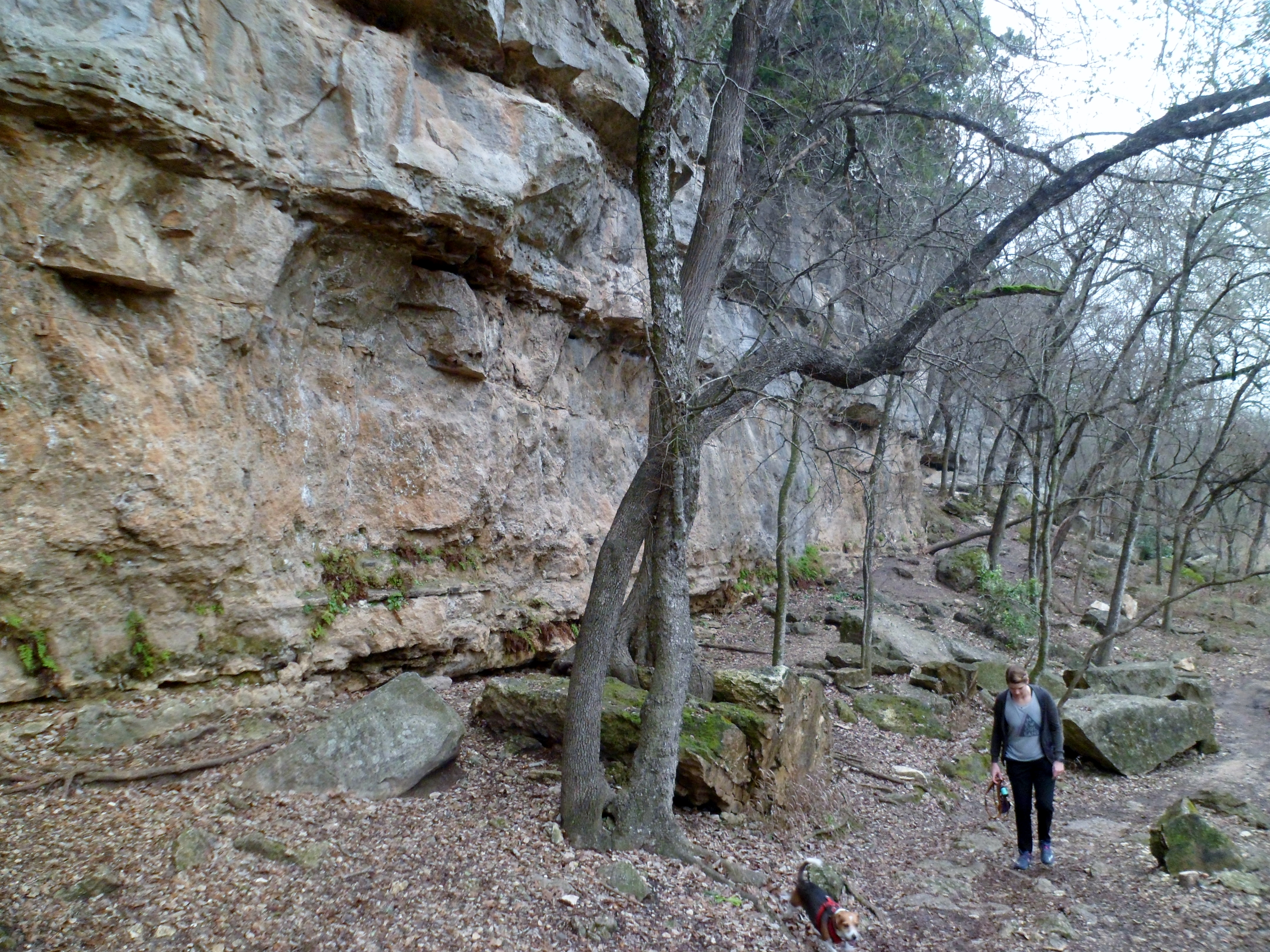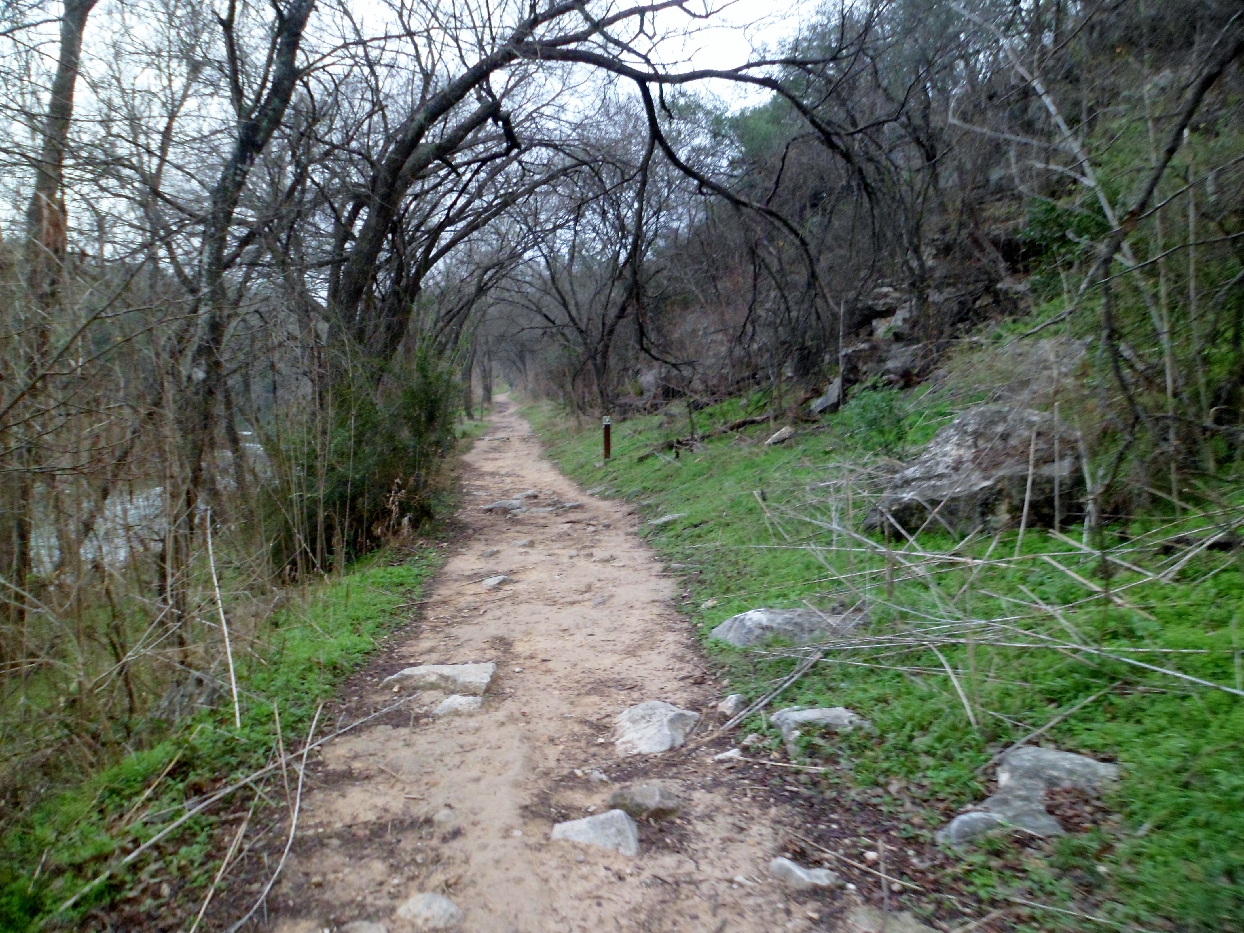 We headed out early on Saturday morning to get to the trail head before 8am when they start charging for parking. Since it was a pretty gray and foggy morning, there were few other cars in the lot at Barton Springs Pool. We headed down the familiar trail.