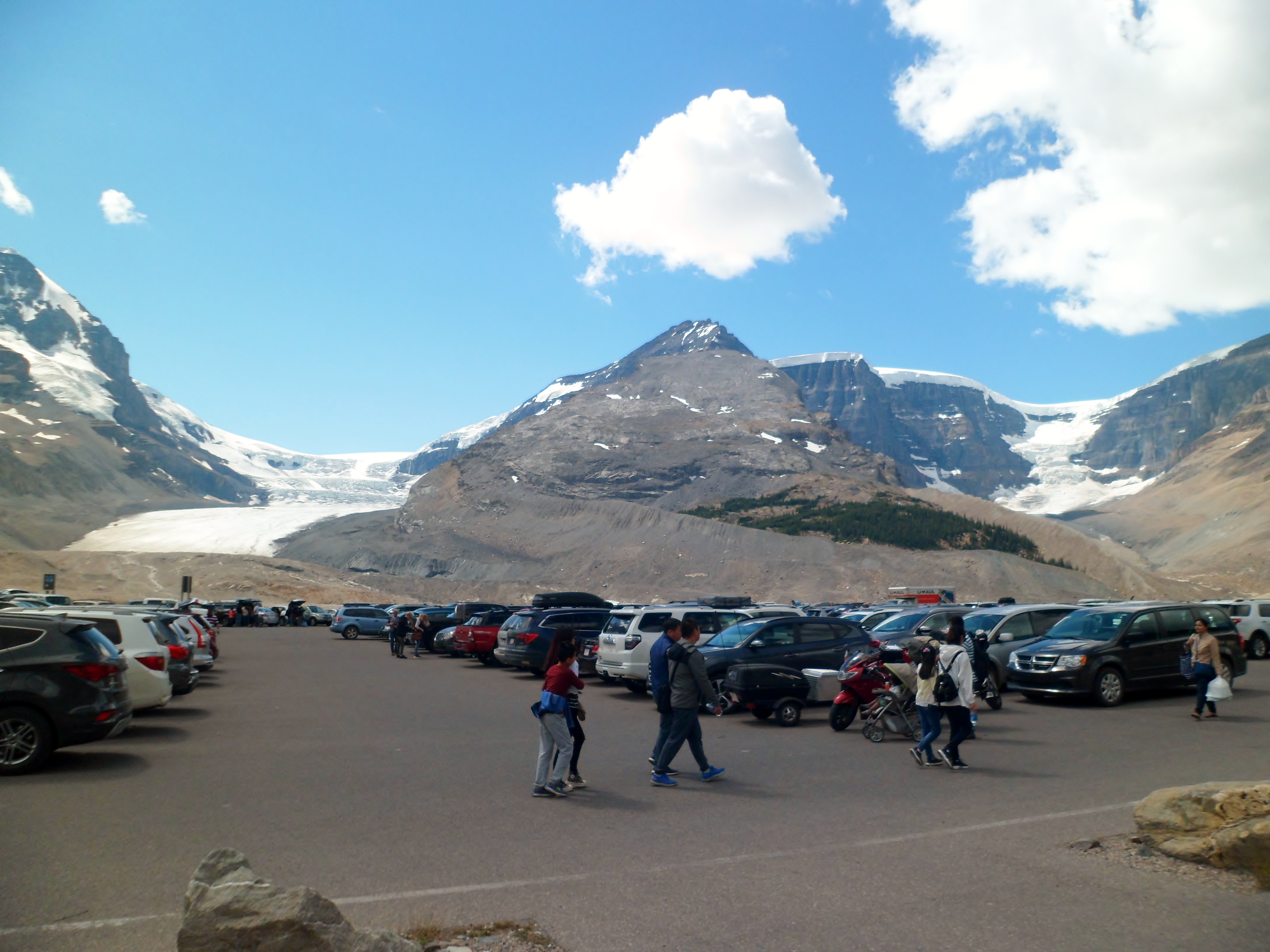 We got to the Icefield around 2:30 and it was PACKED. Luckily, we already had reservations to go up onto the Athabasca glacier in a “snowcoach” and didn’t have to wait in line to buy tickets. Icefields feed glaciers. They are likened to a huge lake of ice and glaciers are like rivers coming off them.