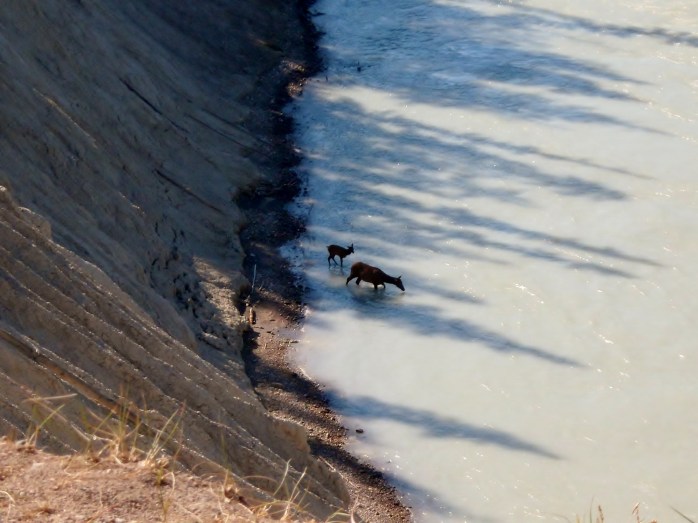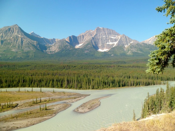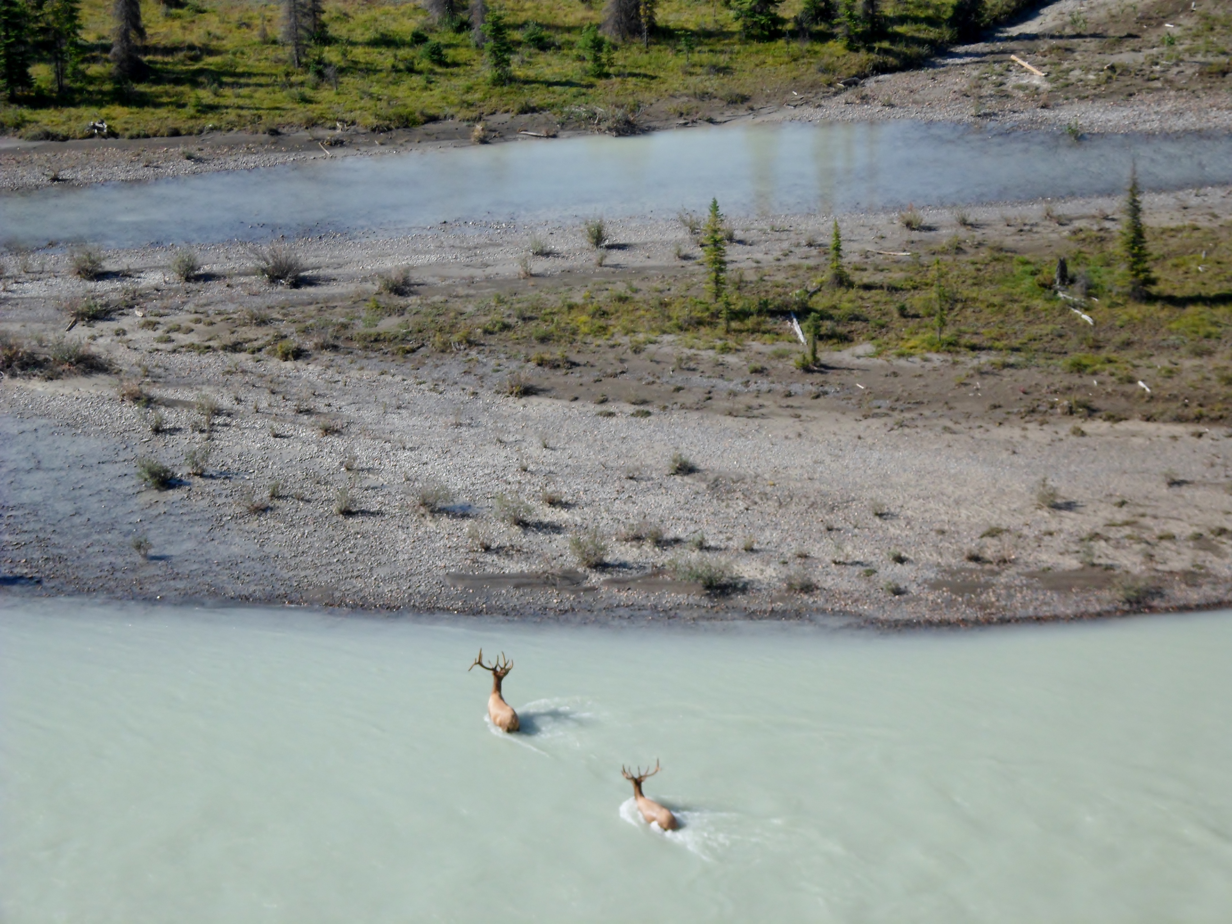 We loaded back up and continued up the Icefield Parkway towards Jasper. After a quick stop at Honeymoon Lake, we stopped at an overlook and saw some elk crossing the Athabasca River.