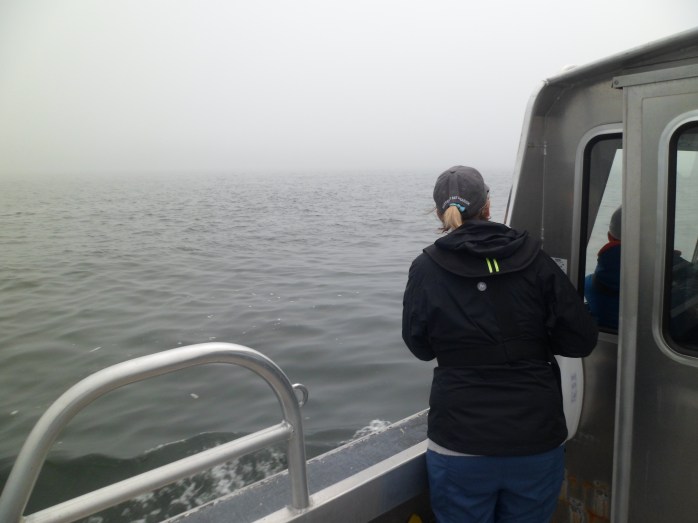 It was nice hiking along the rocky shores and cliffs in the early morning chill and fog. I saw a bald eagle as well, but barely got a photo before he dove out of view.