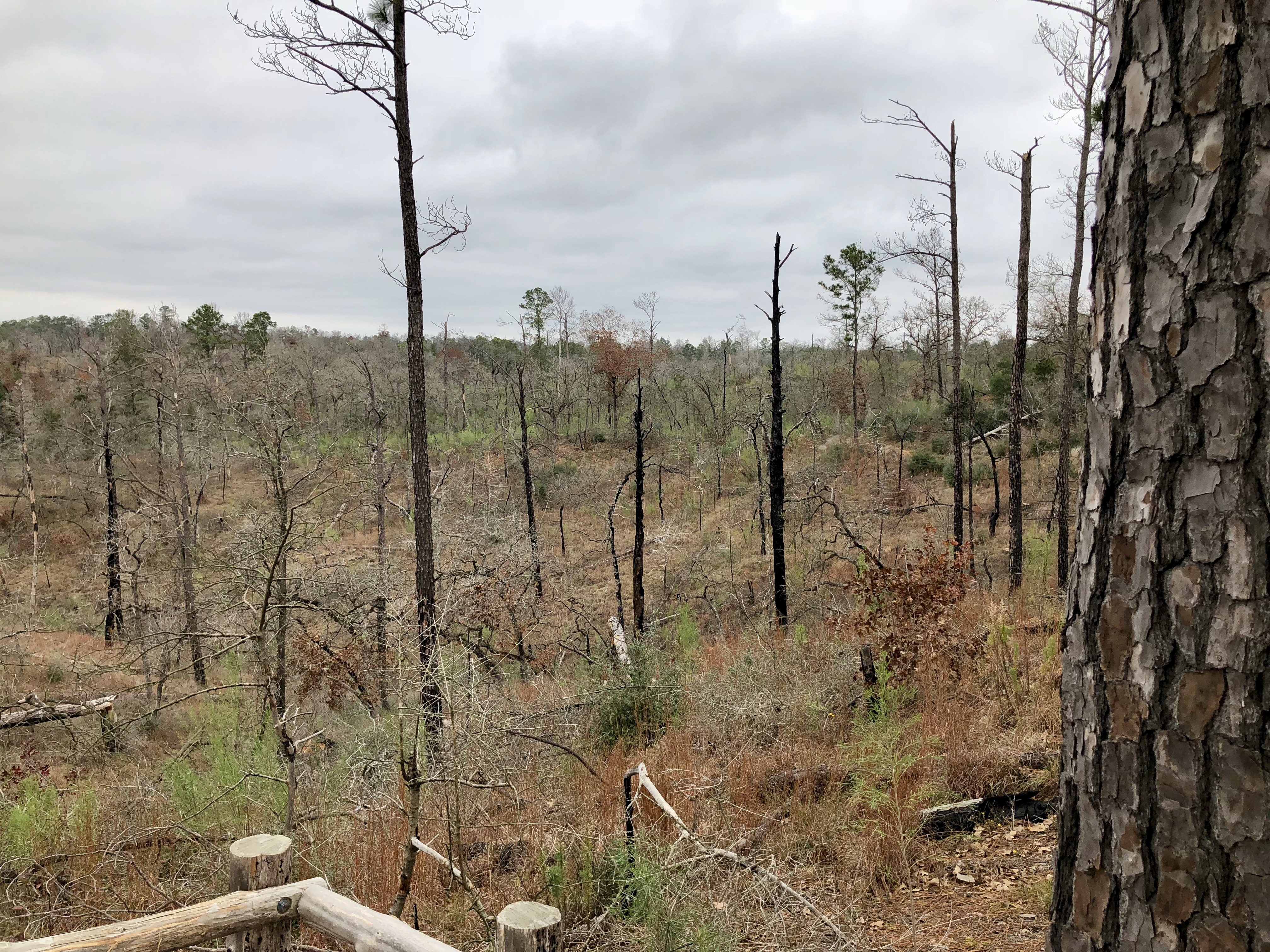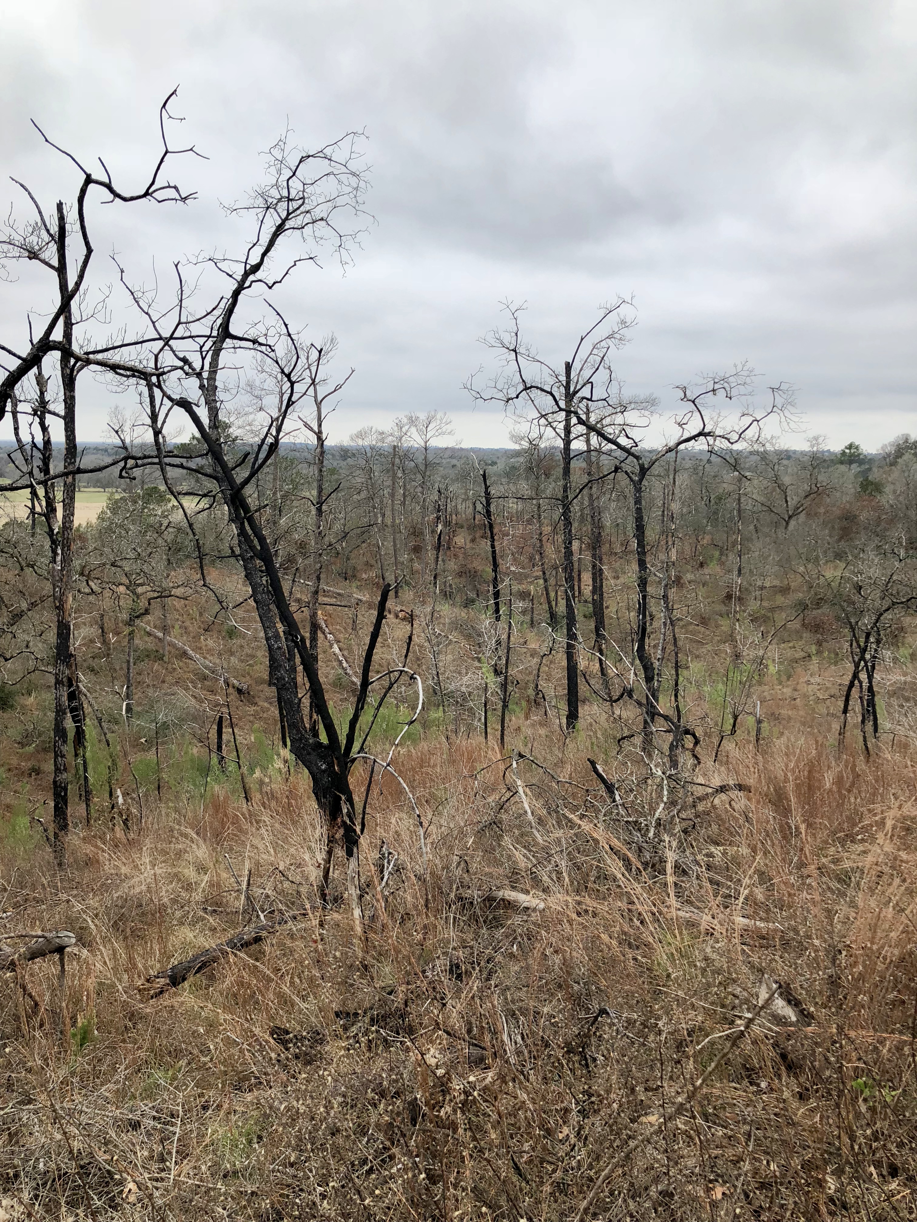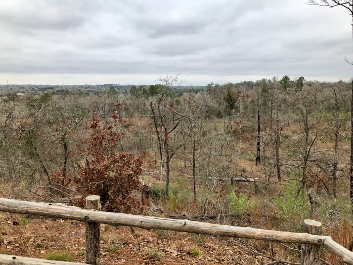 We went out to my parent’s cabin near La Grange for New Year’s Eve, as usual, and decided to go hike in Buescher and see how the trails are recovering from the Hidden Pines Fire in October 2015. They aren’t completely open yet, but we were able to hike about three quarters of the main trail.