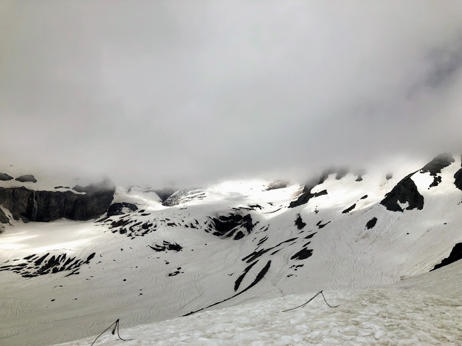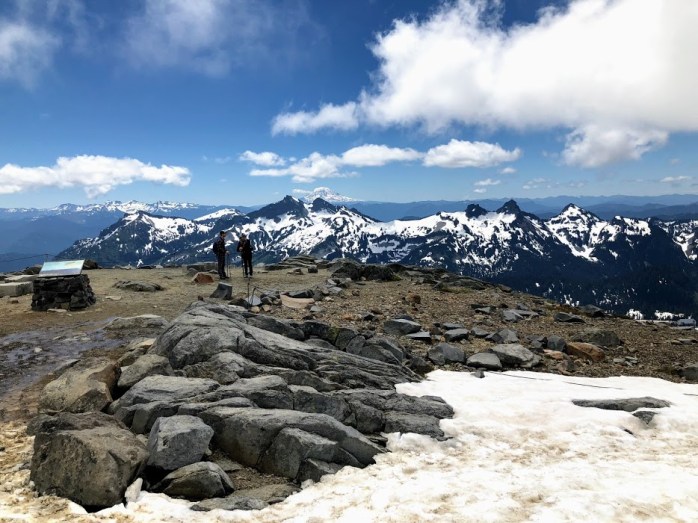 Mt. Rainier was now totally enveloped in cloud and we were glad we had such great views on the way up. We decided to turn back and go down the way we came instead of finishing the Skyline loop, as the weather looked like it might turn. We’ll come back one day and finish the whole thing. Great hike and only a couple of slips on the snow.