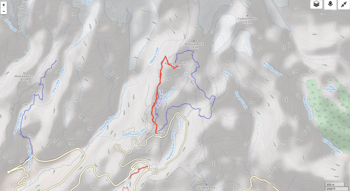 Once we got back to the car, we decided to drive down to Reflection Lakes and do a quick loop on the Wonderland Trail and High Lakes Trail, but were blocked about a half mile in by a creek crossing that was doable, but just too dangerous for today.