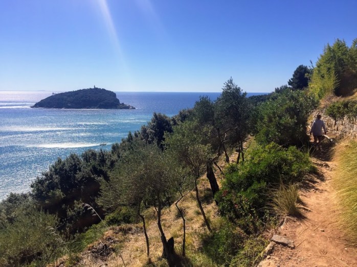 We started off on an old jeep trail that gradually climbed up and around the island, giving us some nice views looking back toward La Spezia and the mainland.