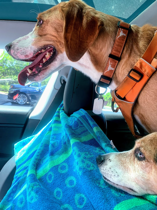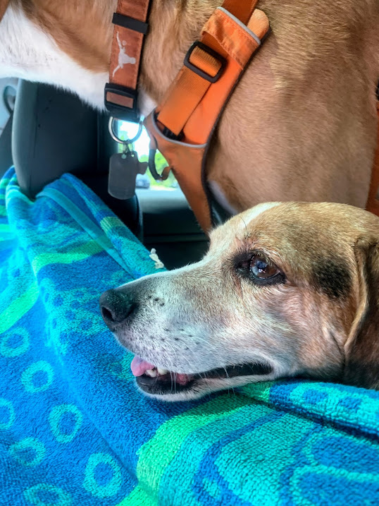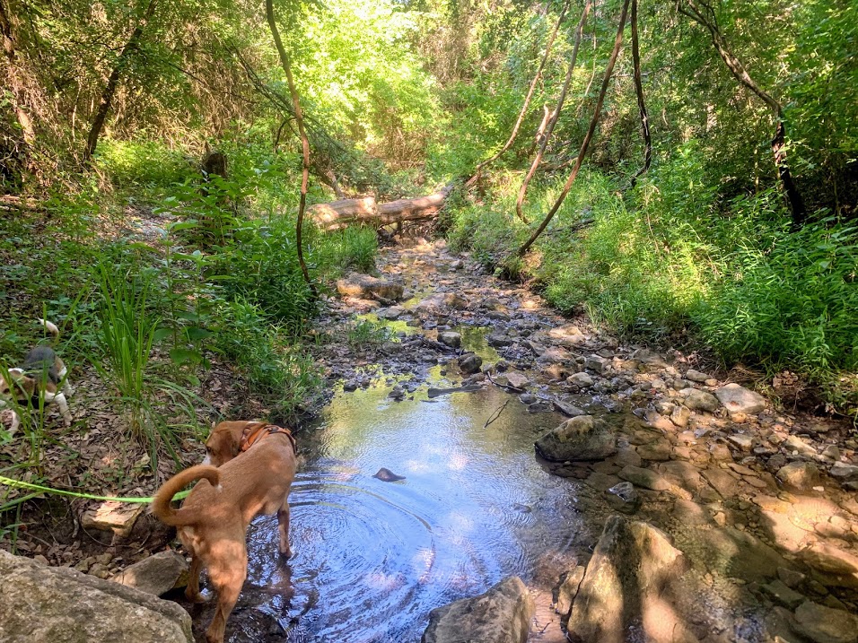 We got out to the trail early enough that the heat wasn’t bad yet and there was a lot of shade, so the pups did fine. We also managed to get a little lost, like we do about half of the time we come out to these trails, so had to road walk the end back to the car, but good times were had by all.