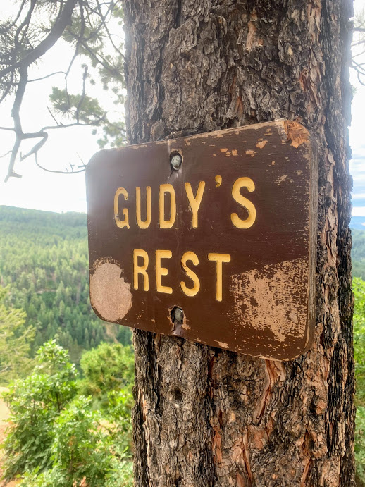 The trail followed the north side of the valley formed by Junction Creek and then dipped down to cross it on a wooden bridge. After crossing to the other side, we were confronted by a series of switchbacks that brought us up to the top of the south side and a spectacular view at Gudy’s Rest.