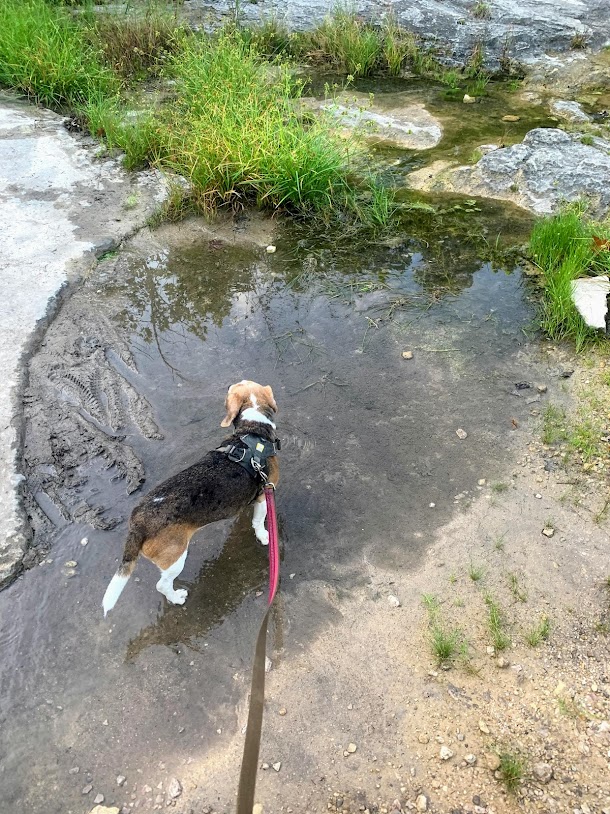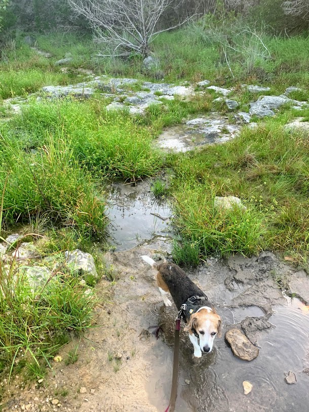 Most of the creeks were dry, but there was a little water in Bee Creek that Biff was appreciative of.