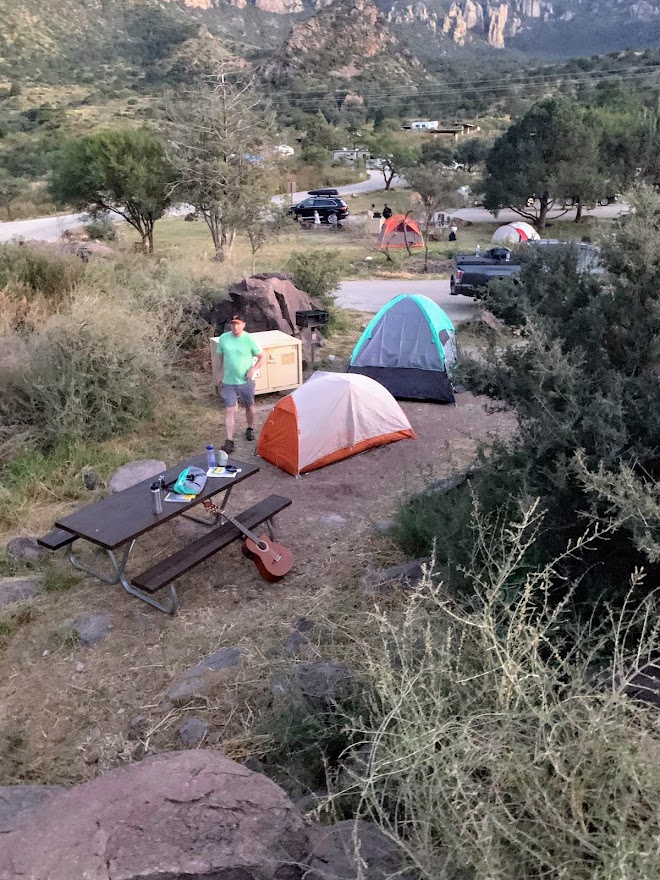 We were all pretty wiped out when we got down to the basin again. We stopped at the lodge restaurant for lunch and a couple of beers. We had planned to do the Ross Maxwell Scenic Drive and maybe another short hike that day, but once we set up camp, we decided to just veg out in the shade for the rest of the day.