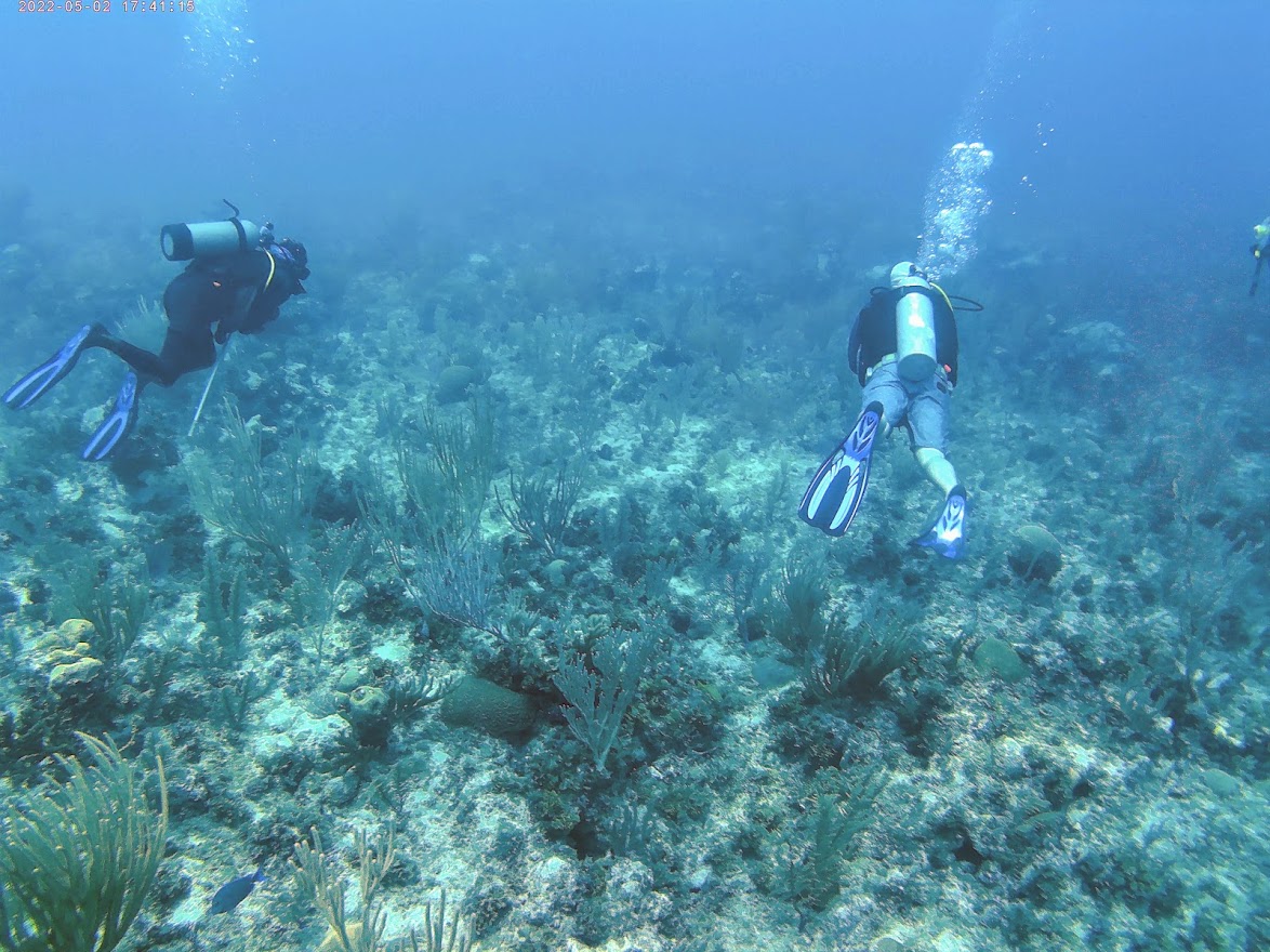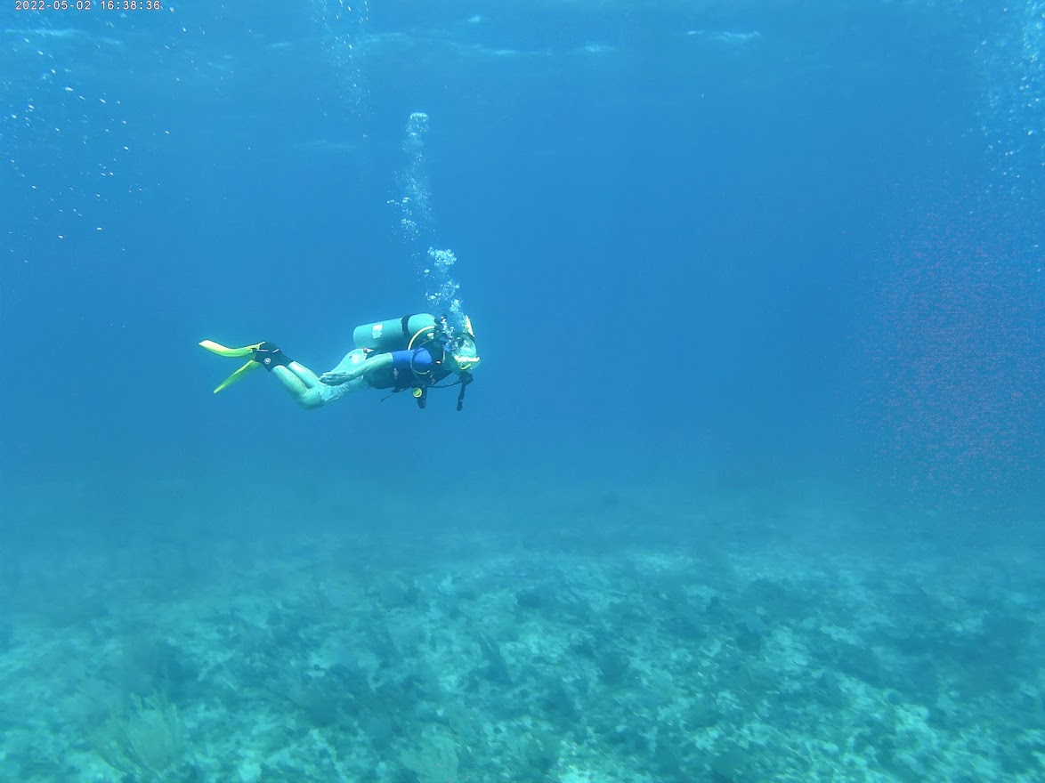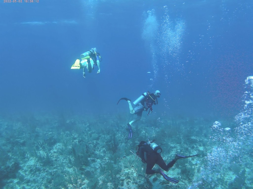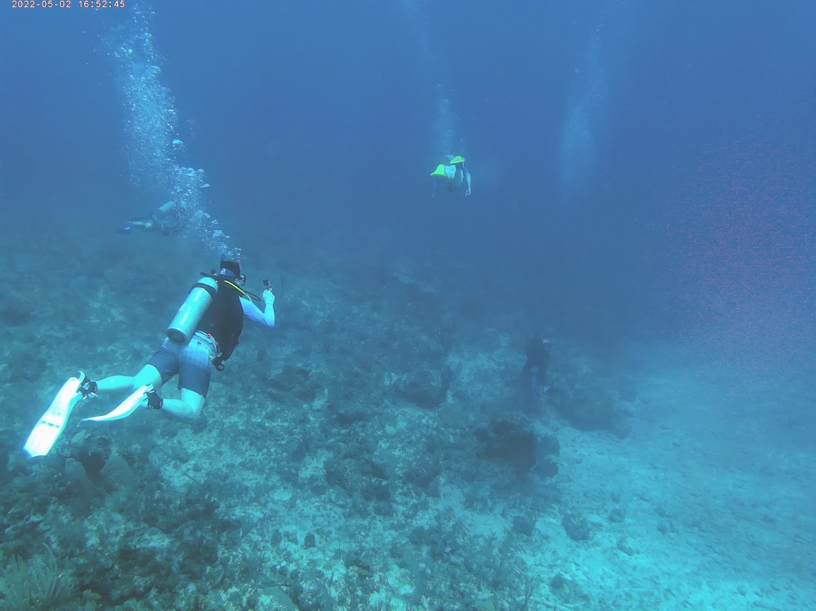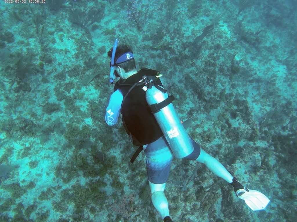 We did two dives to two separate reefs, Half Moon and Stingray. When we arrived at the dive shop in the morning, we found that they had mixed up our reservation and we were actually supposed to go that afternoon, but luckily there were just two other divers there (a father and son) who said we could go with them on their charter. They were both experienced divers and it was nice to have them along to keep an eye on us newbies.