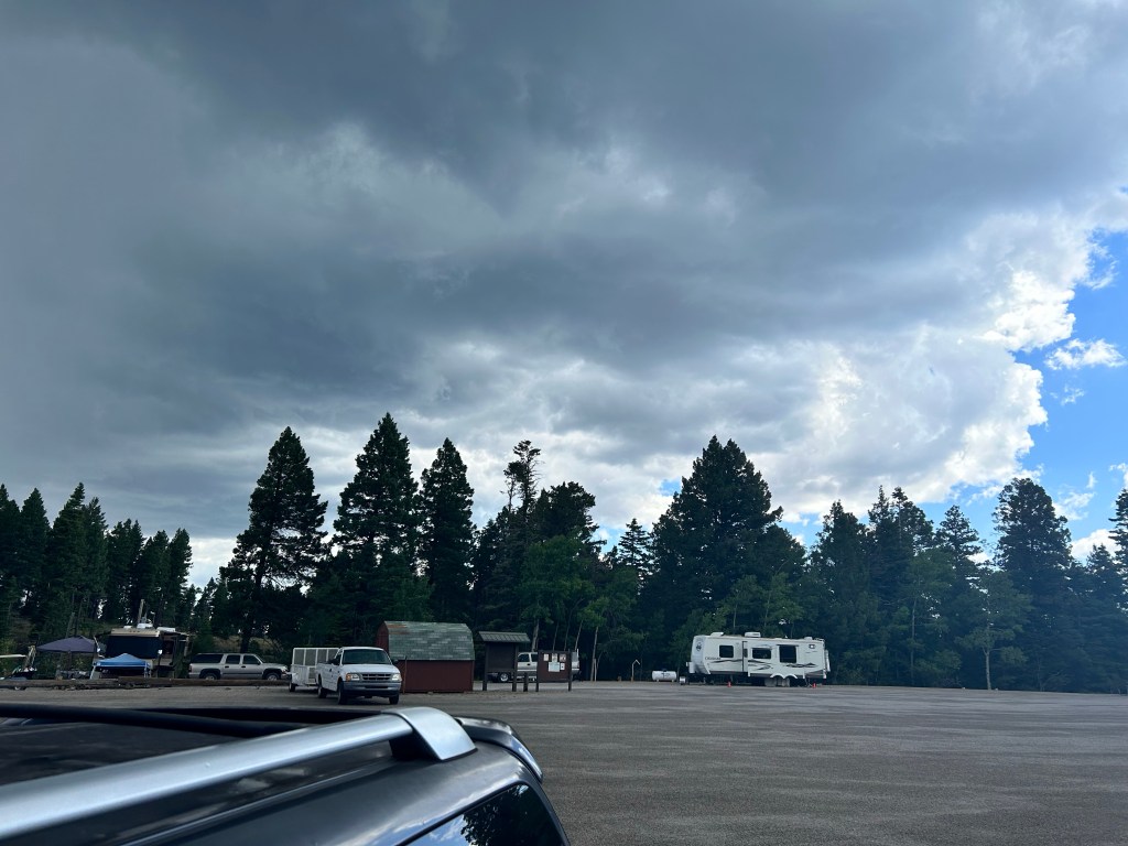 We got close to the car again where we were to take another trail, but the clouds were gathering. We knew the forecast had a chance of thunderstorms this day, but they weren’t supposed to hit until 1pm. Alas, at 11am, the skies opened up. Luckily, we only had about 50 yards to get to the car to escape the rain and hail that would last for over an hour.