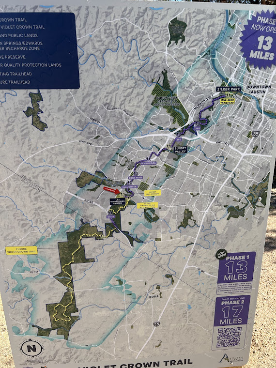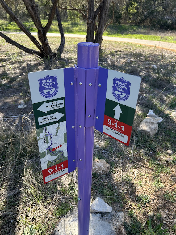 I started at the Lady Bird Johnson Wildflower Center in south Austin and headed north. The trail is nicely signed and well maintained down there.