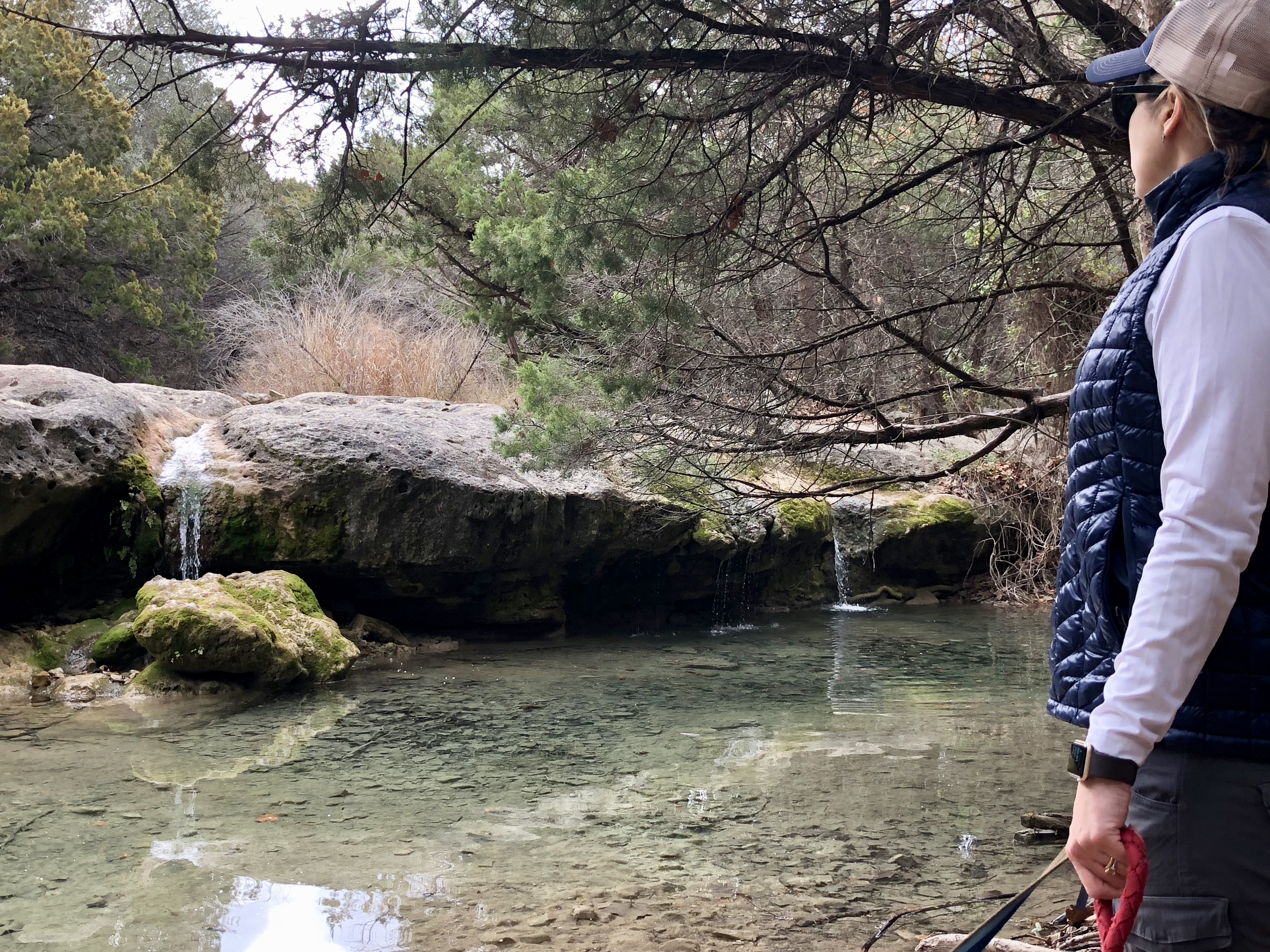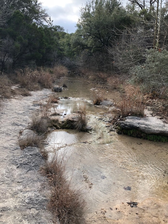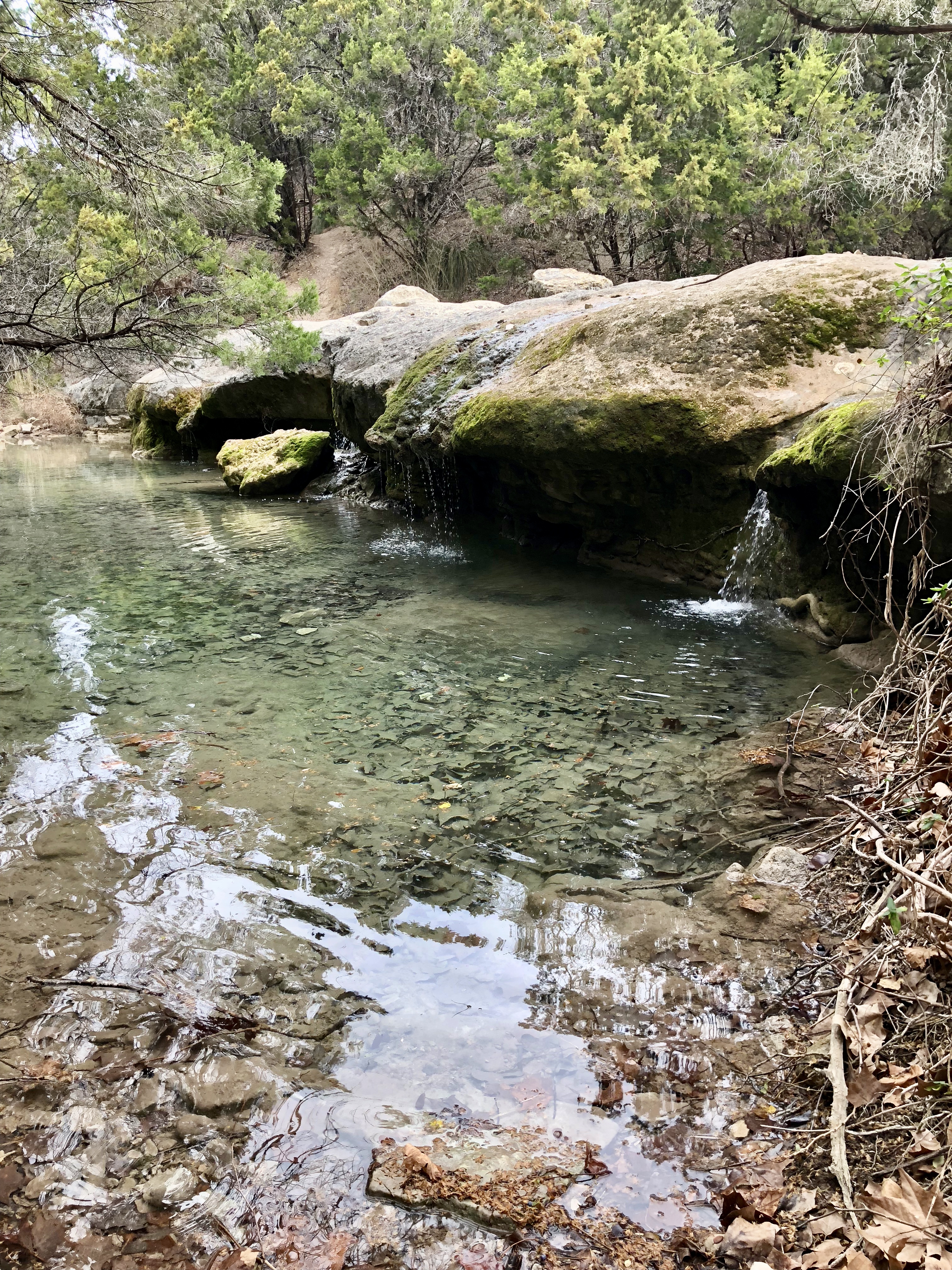 This was a nice little trail along a creek that feeds into the Colorado River. The trail is your typical Texas Hill Country trail: rocky and surrounded by cedars. Just a half mile in or so, we came to the waterfall, which is the main highlight of this trail, but it wasn’t flowing very much. Still pretty though.
