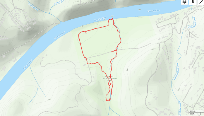 Another new trail for us. It turns out there are a lot of trails within the LCRA parks that aren’t well known or traversed. Grelle Recreation Area is right near Muleshoe Bend, which we hiked a few weeks ago, but I liked this trail much better. It was a true hiking trail (not a mountain bike trail) and had lots of ups and downs that made for a semi-challenging experience, especially with our relative lack of hiking, and therefore fitness, as of late.