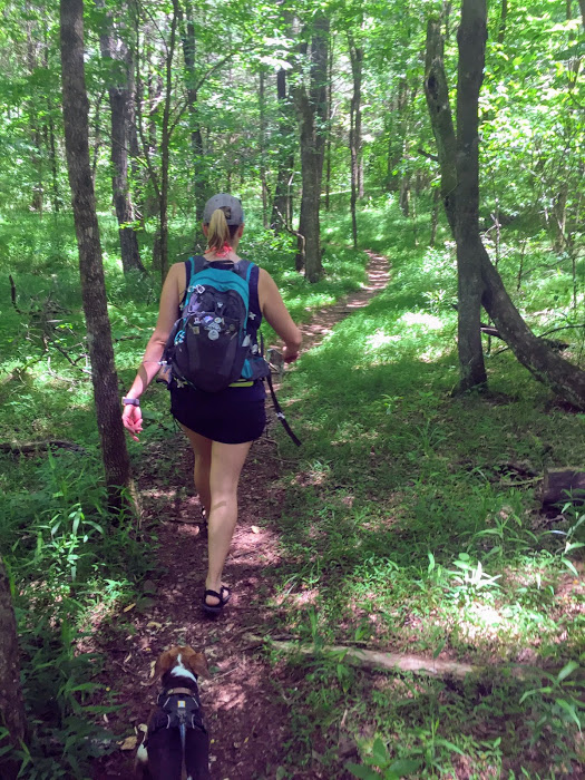 I used Finn’s new leash which attaches to a hip belt so it made hiking with two dogs much easier, as I had one hand free most of the time. When we got back to the car we had a quick water and snack break. I was going to do another short loop by the lake, but about 5 minutes down the trail Biff gave me the look that it was time to call it a day so we got back to the car and blasted the AC.
