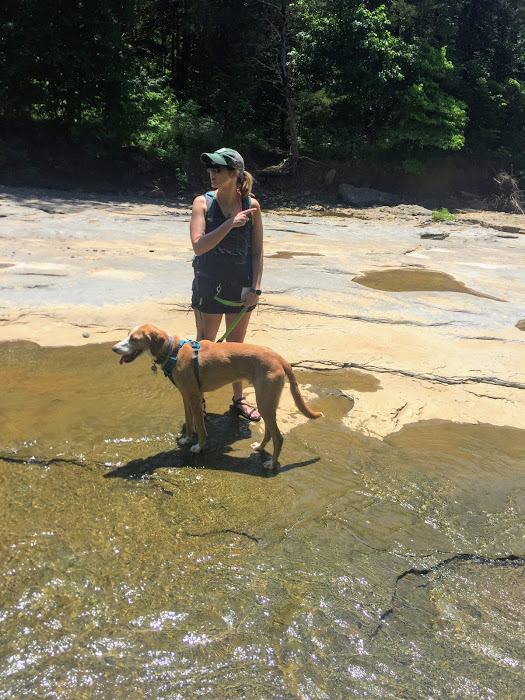 The day was still young, so we headed to a different part of the park and hiked a lesser traveled path that followed Lee Creek and allowed for some water fun for the dogs as well. The water was cold and refreshing.